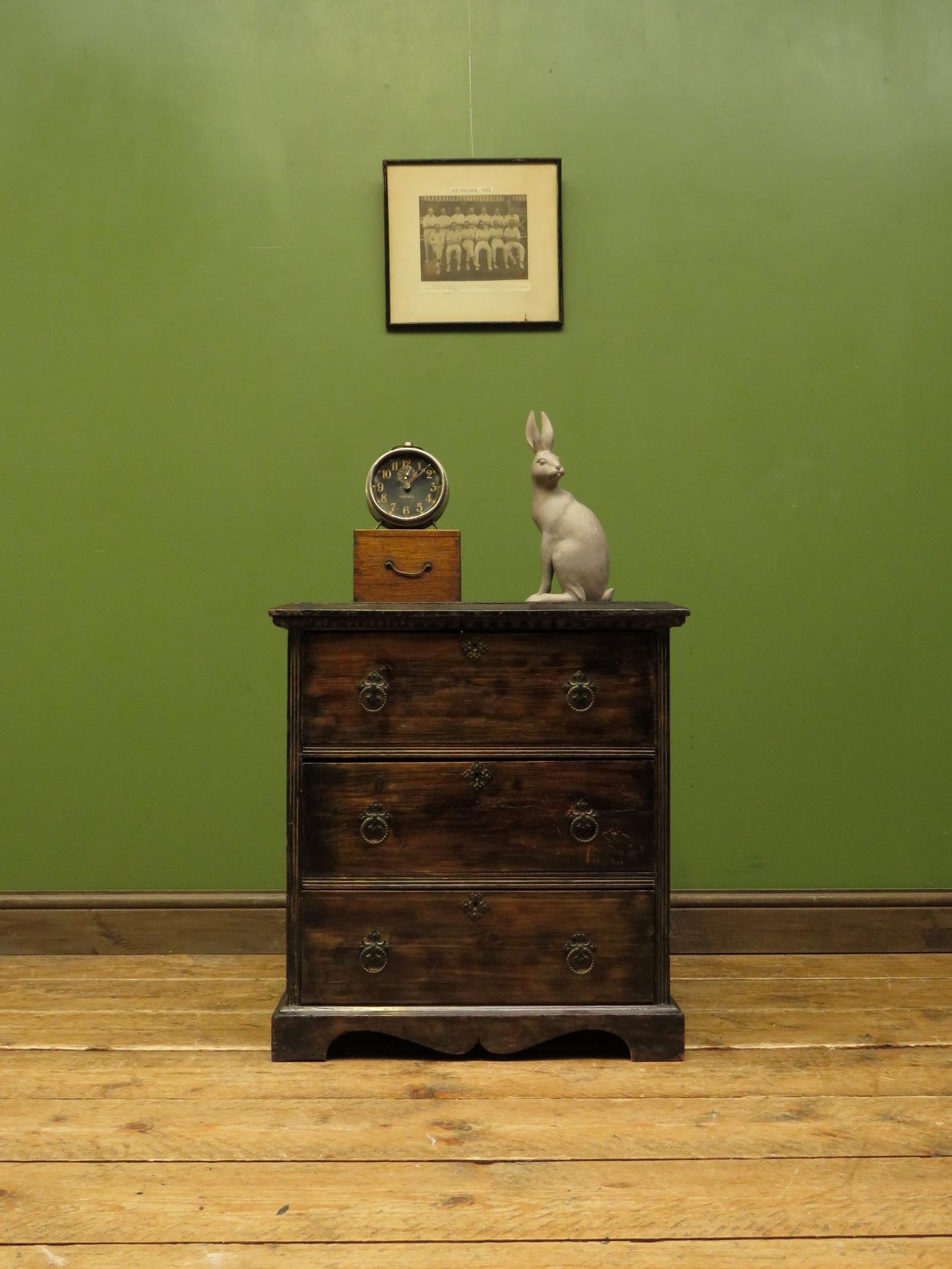 Antique Small Rustic Black Chest of Drawers