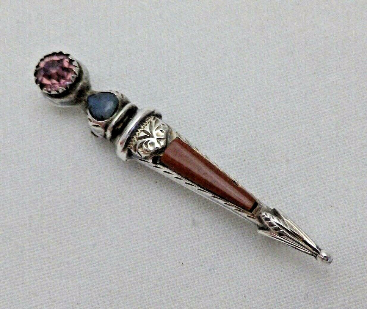 Antique Small Sterling Solid Silver Dirk Pin Pebble Brooch