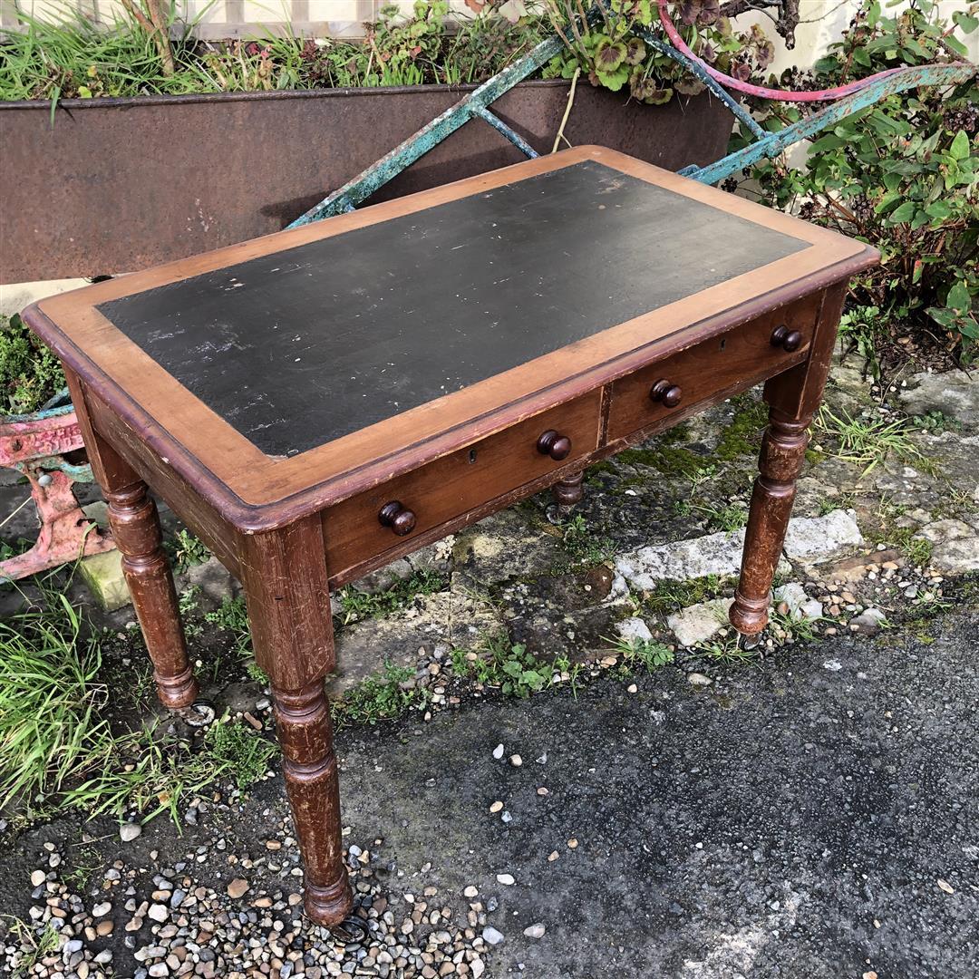 Antique Small Writing Table Desk with Inset Faux Leather Top