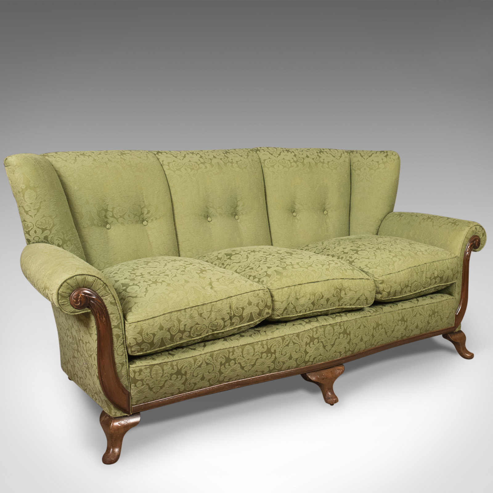 Antique Sofa, English Green Edwardian 3 Seater Settee c.1910