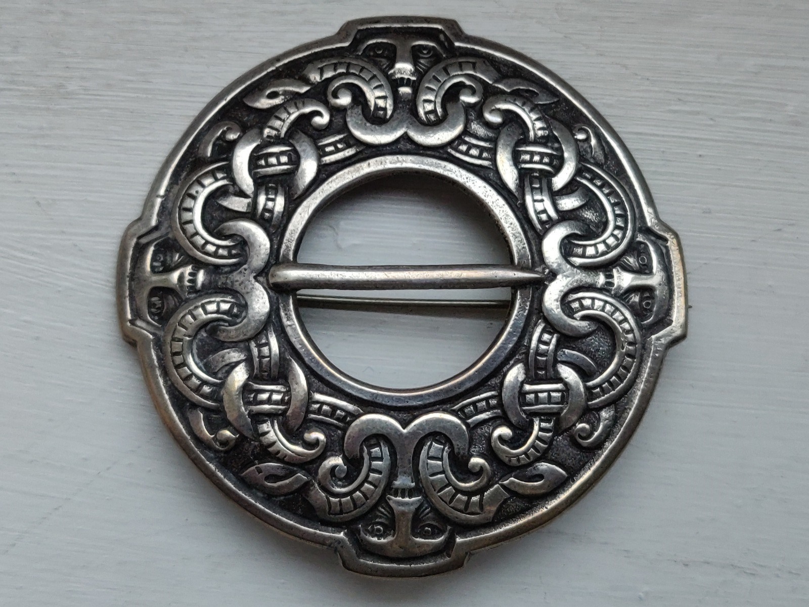 Antique Solid 830 Silver Norwegian Dragestil Huge Brooch Signed Nils Erik Elvik