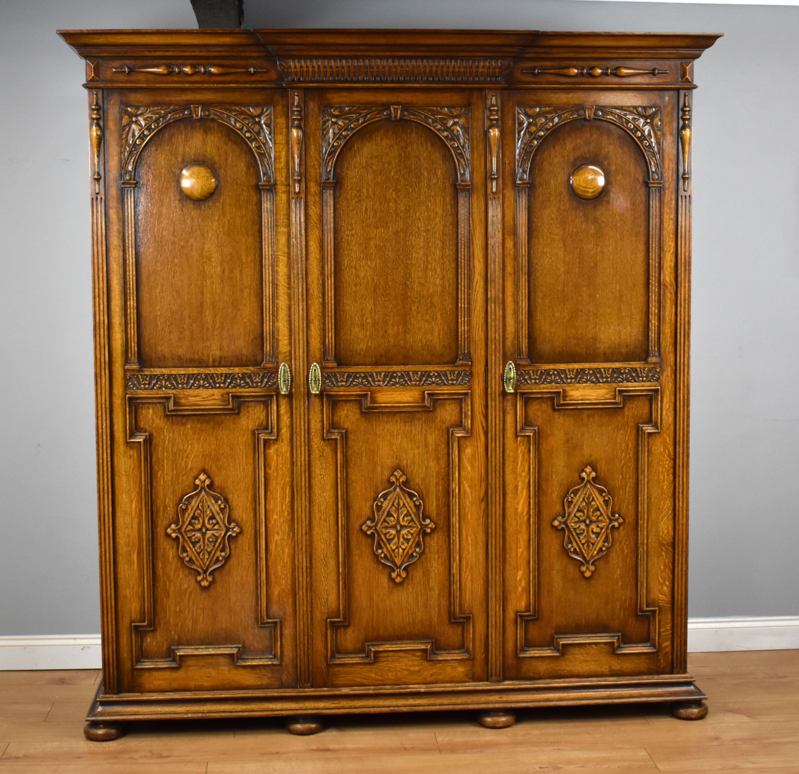 Antique Solid Oak Jacobean Style Wardrobe c.1900