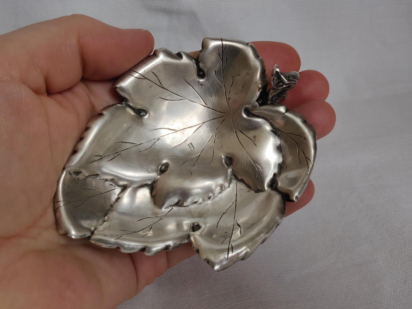 Antique Solid Silver 900 Leaf Shaped Nut Dish/ Trinket Dish/ Sweet Dish