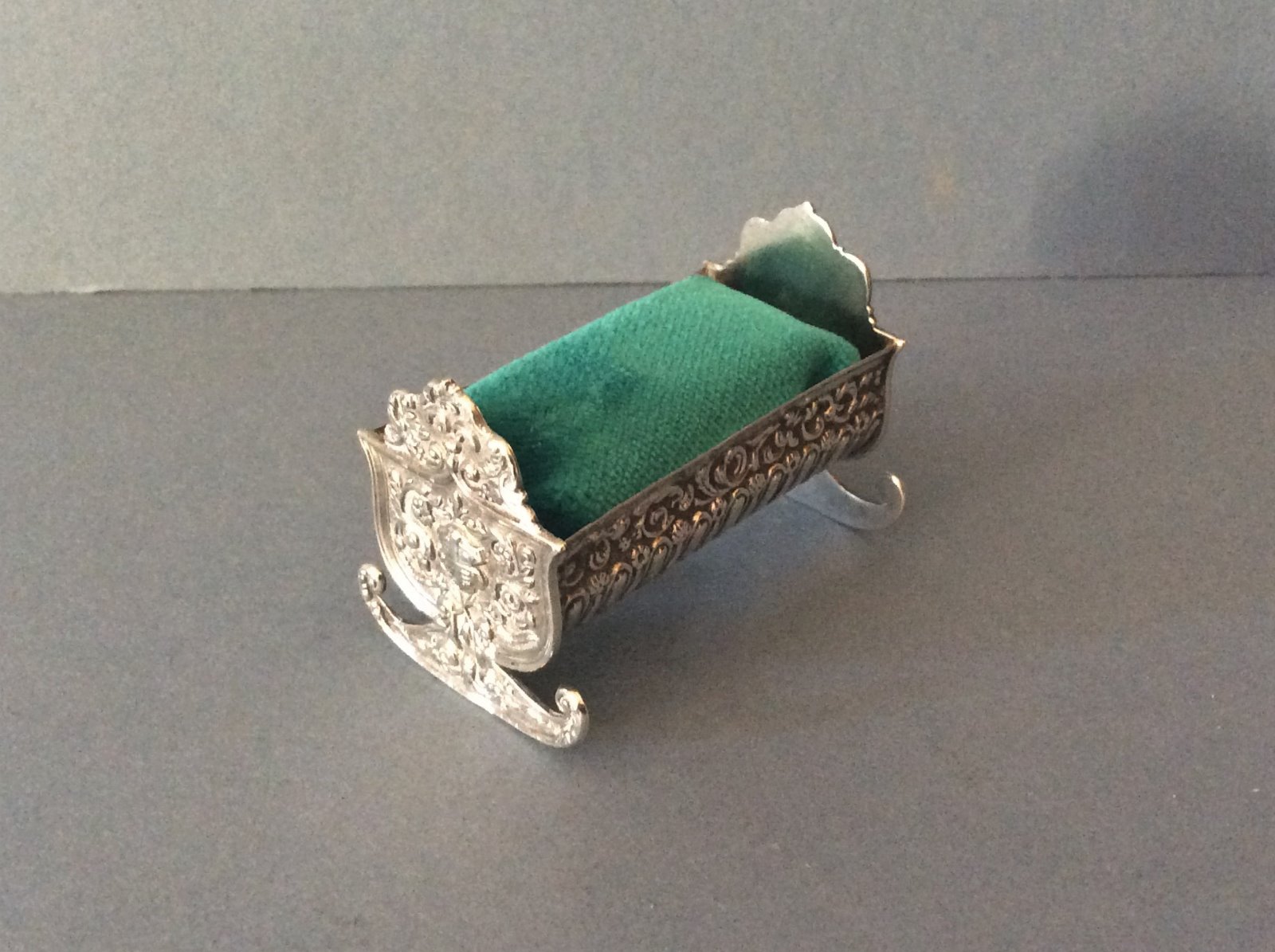 Antique Solid Silver Cradle / Crib Pin Cushion
