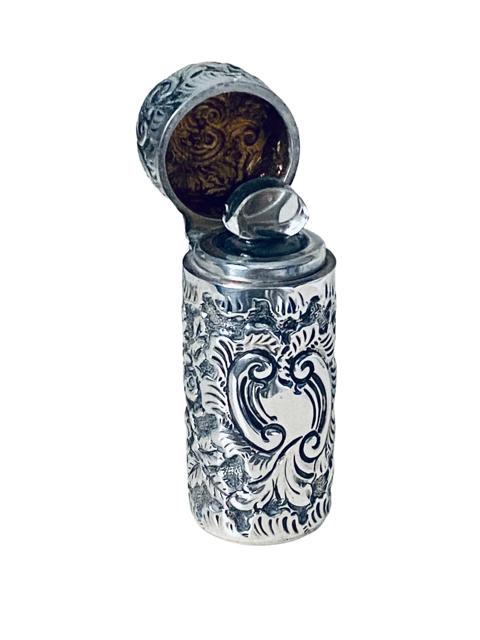 Antique Solid Silver Cylindrical Perfume Scent Bottle Birmingham 1891