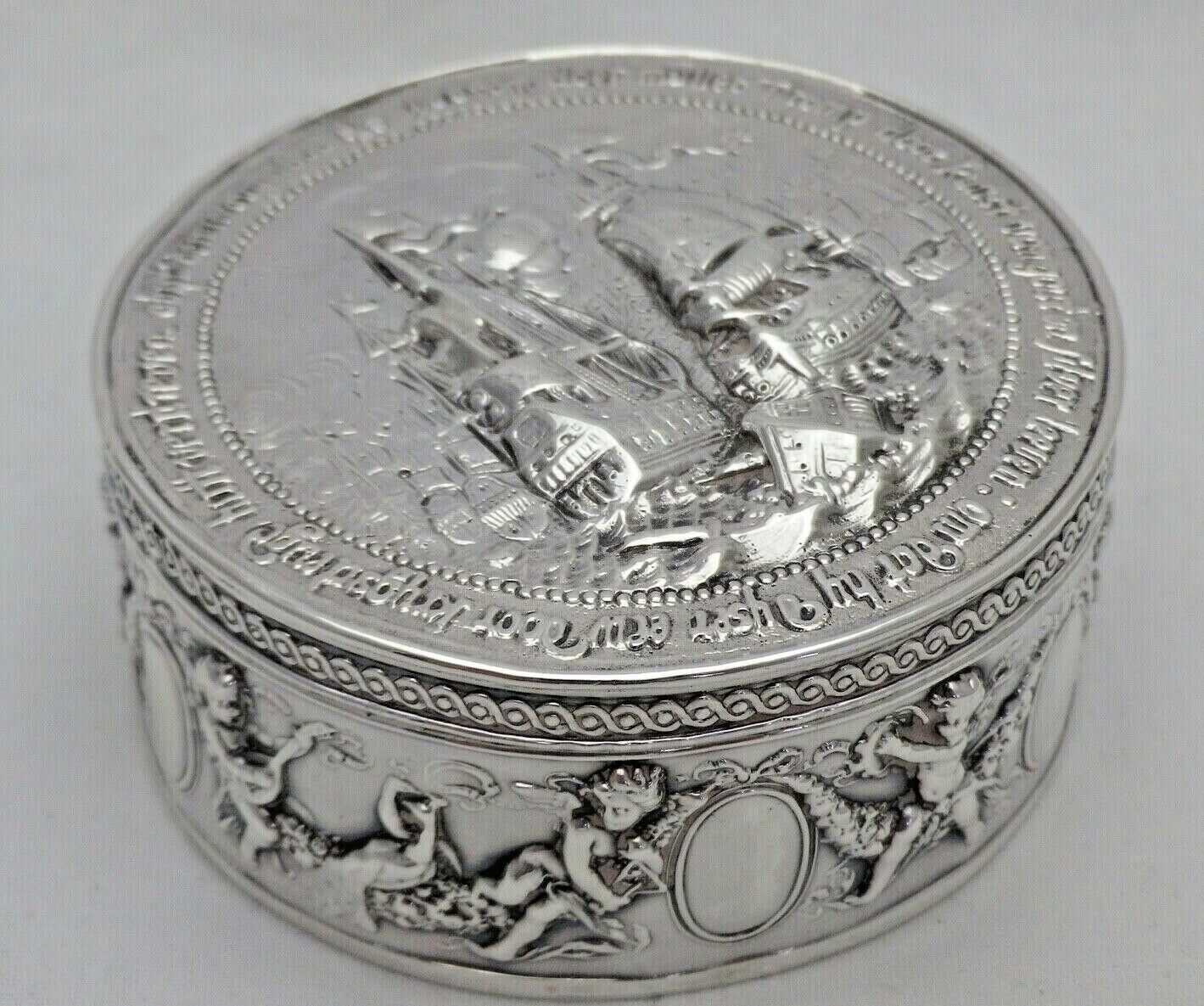 Antique Solid Silver Dutch Admiral Maarten Tromp 1653 Naval Snuff Box