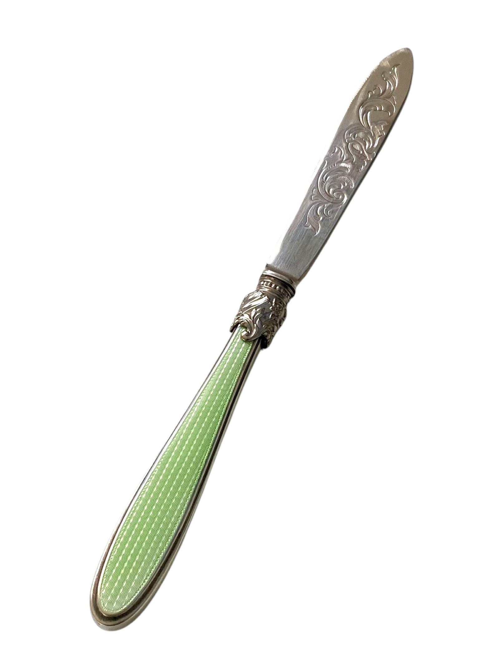 Antique Solid Silver & Guilloche Enamel Letter Opener Sheffield 1863