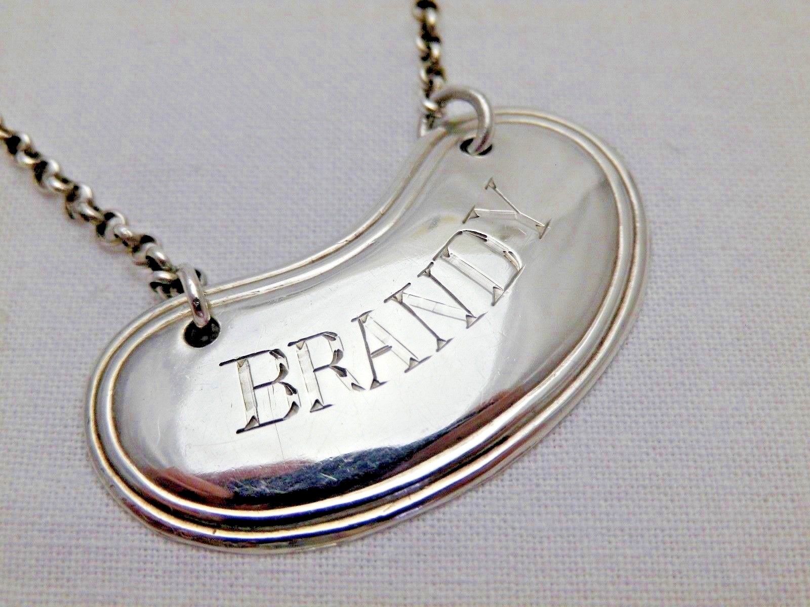 Antique Solid Silver Kidney Shaped Decanter Brandy Wine Label Ticket 1895