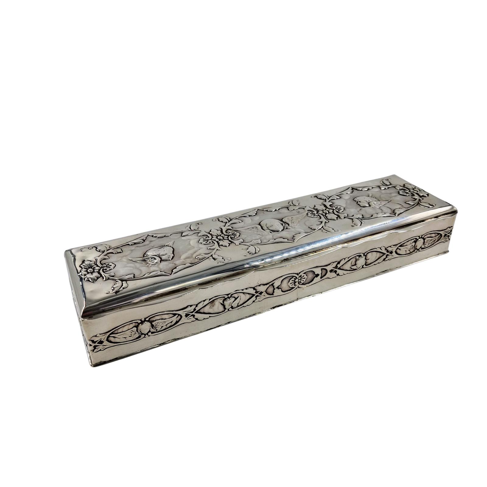 Antique Solid Silver Large Art Nouveau Cherub Box