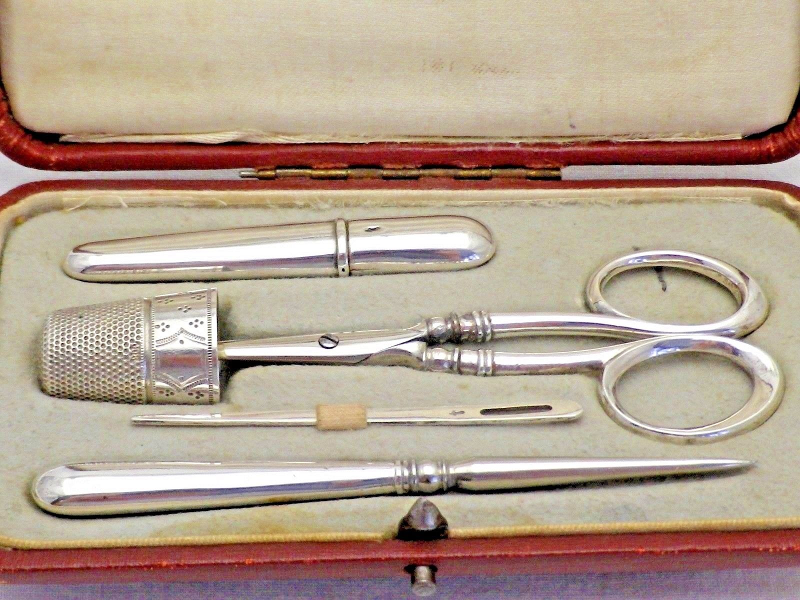 Antique Solid Silver Needlework Set Jm Van Kempen & Zonen c.1880