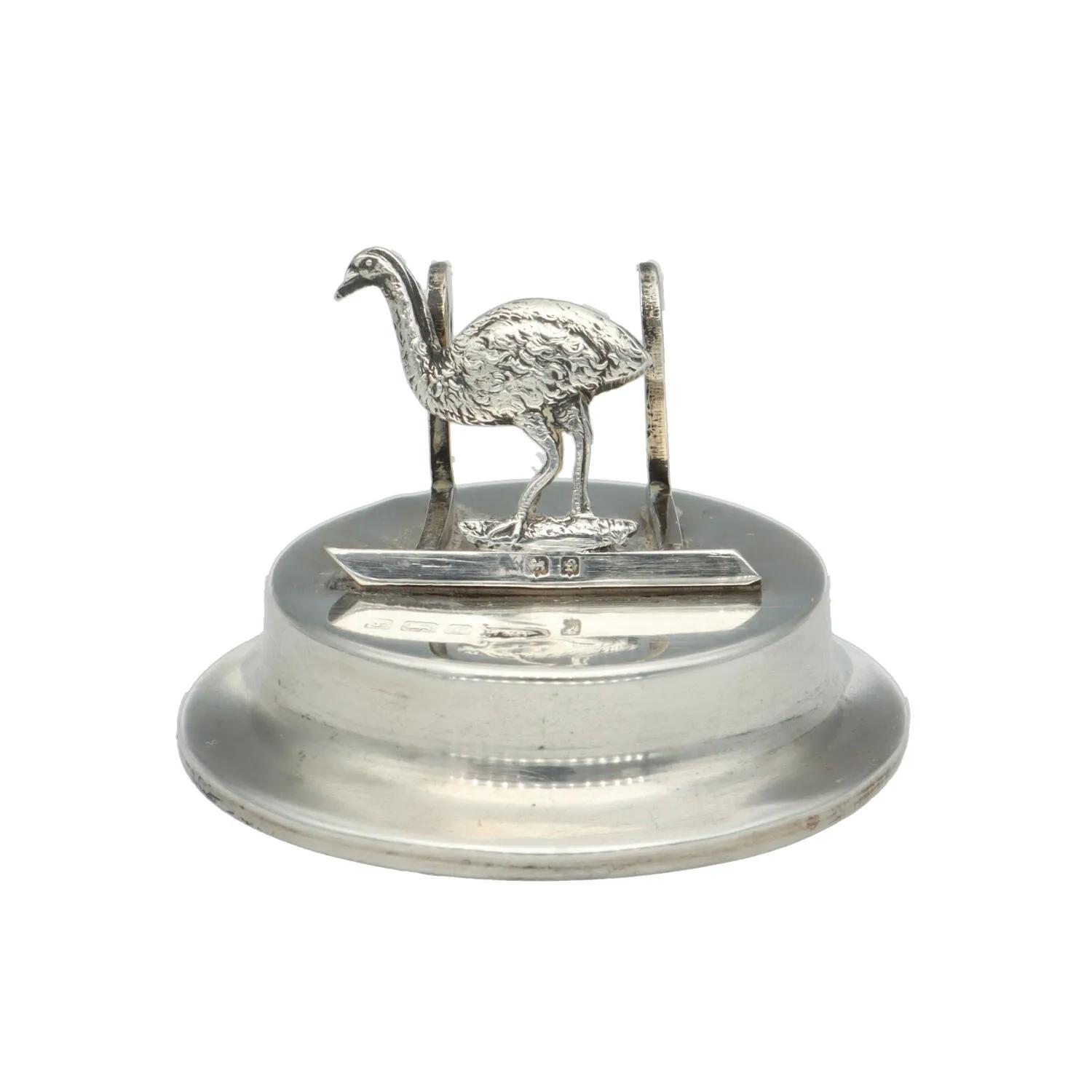 Antique Solid Silver Novelty Australian Emu Bird Menu Holder