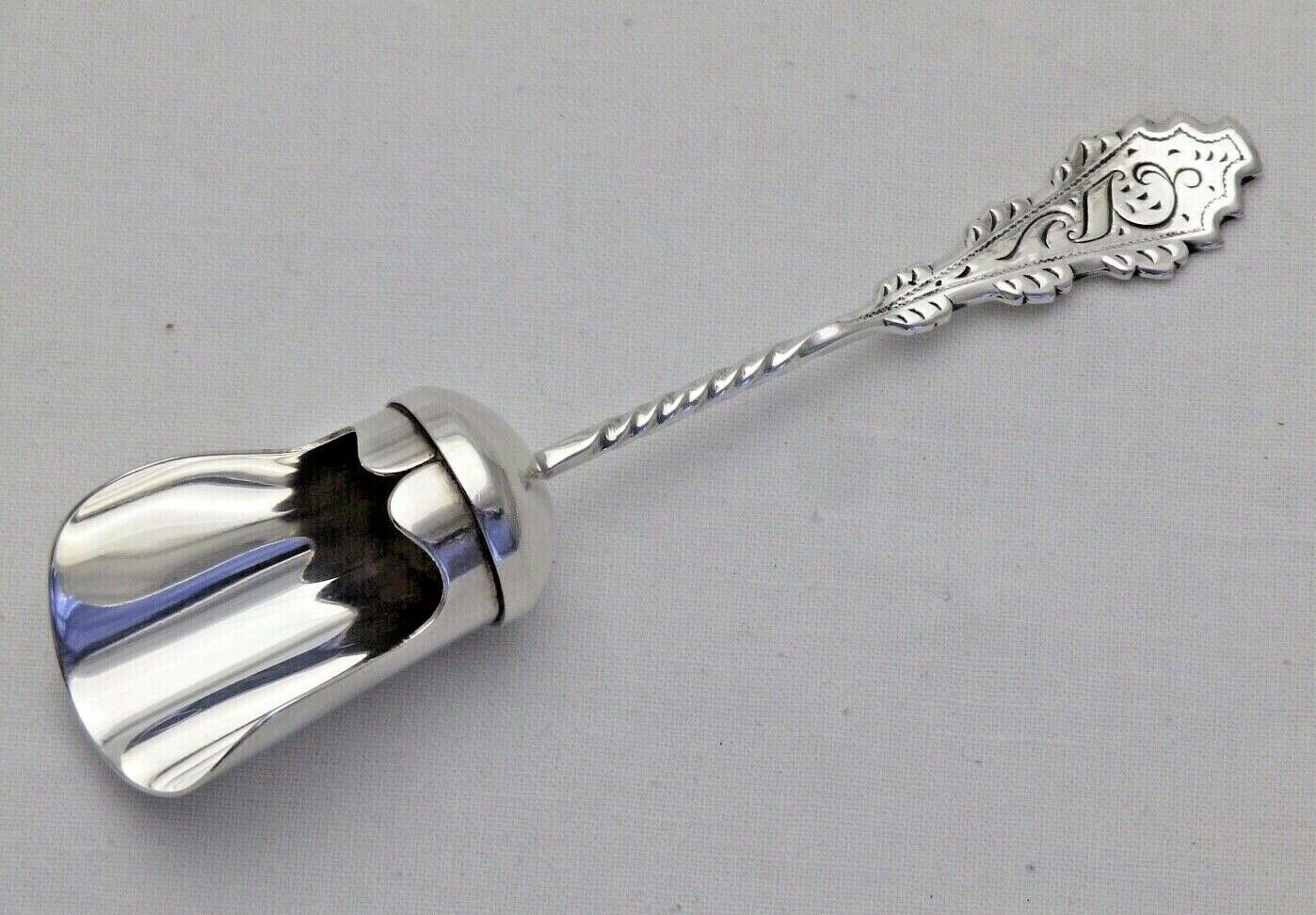 Antique Solid Silver Shovel Shaped Tea Caddy Spoon Spiral Stem