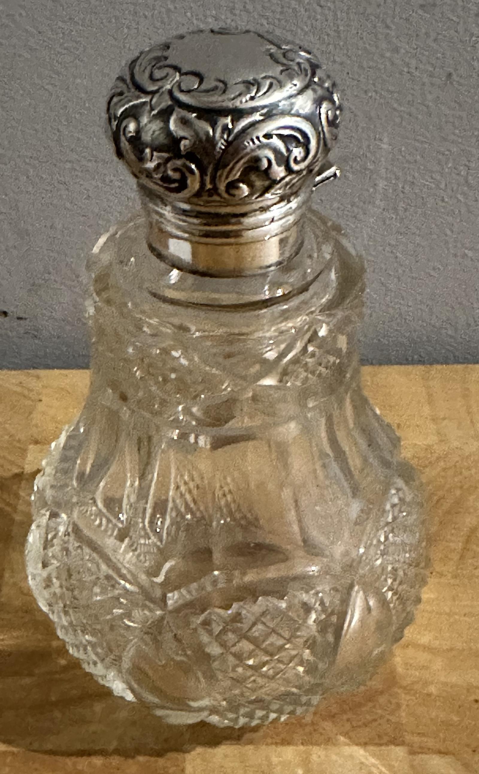Antique Solid Silver Topped Cut Glass Scent Bottle Levi & Salaman 1898