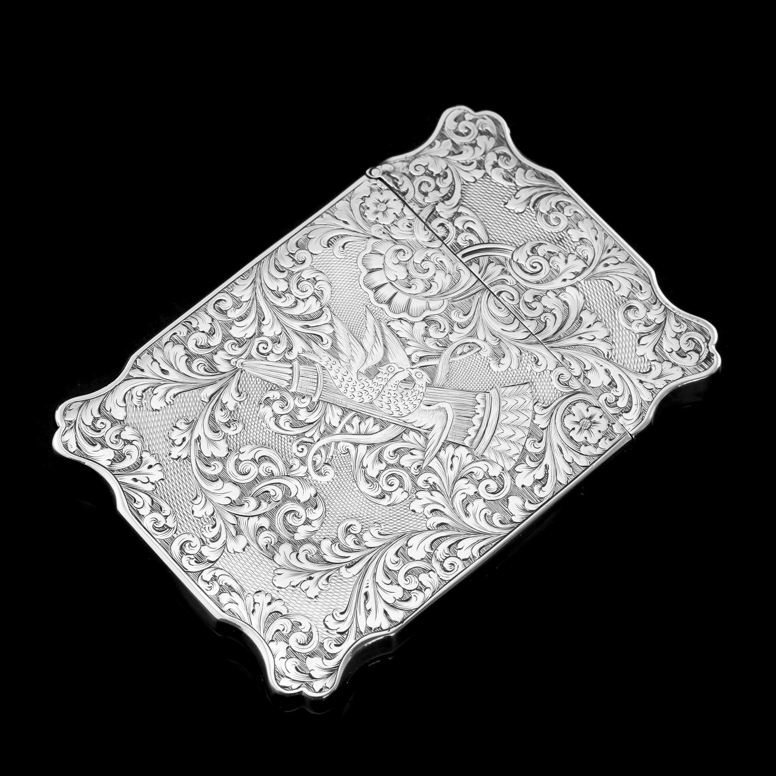 Antique Solid Silver Victorian Card Case with Stunning Engravings - Taylor & Perry 1840