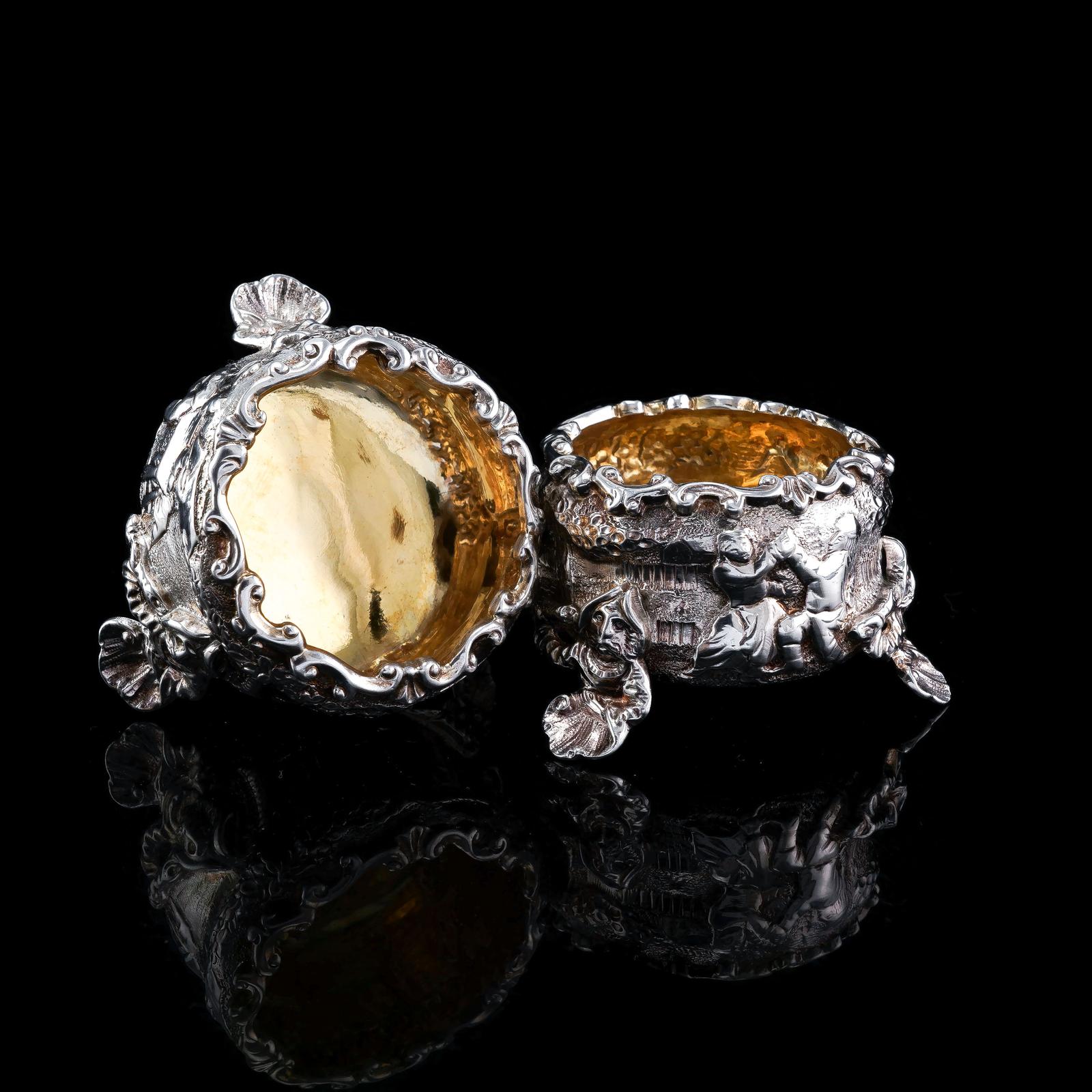 Antique Solid Silver Victorian Salt Cellars in Teniers Style - Daniel & Charles Houle 1878 (1 of 15)