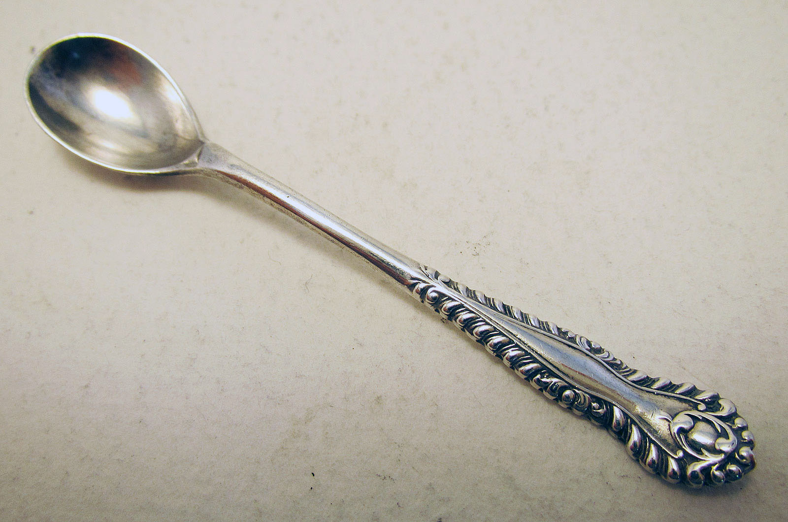 Antique Solid Sterling Silver 'Feather Edge' Pattern English Mustard or Salt Spoon, Condiment Spoon, Small Size Length 2 3/4"