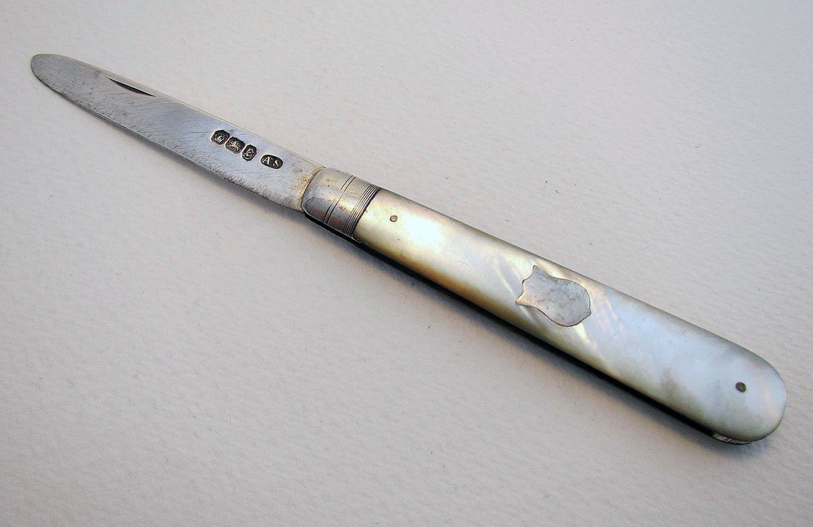Antique Solid Sterling Silver & Mother of Pearl Mop English Sheffield Hallmarked Folding Pocket Fruit Penknife C.1900