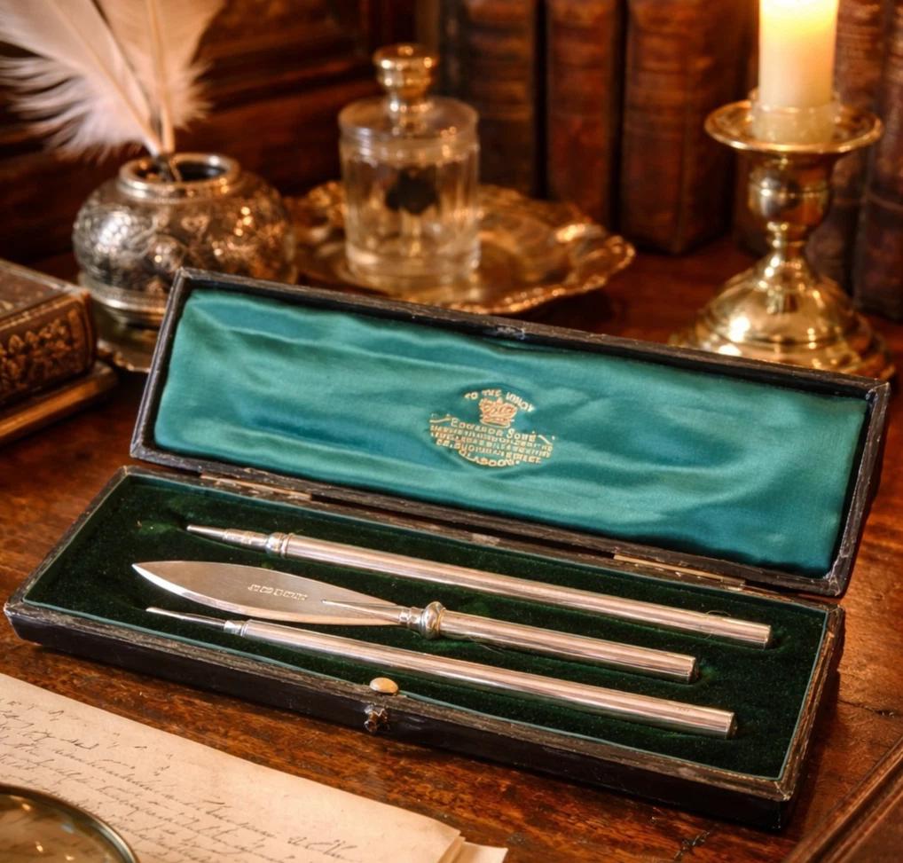 Antique Solid Sterling Silver Writing Set by William Hair Haseler Birmingham 1904