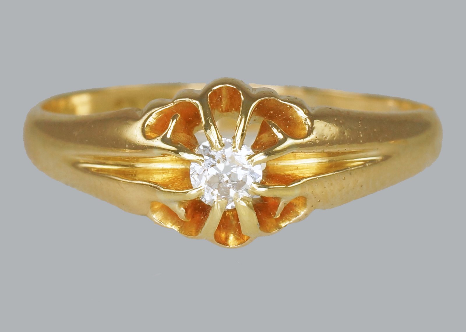 Antique Solitaire 18ct Gold Old Cut Diamond Ring Size T Hallmarked 1914 (1 of 12)