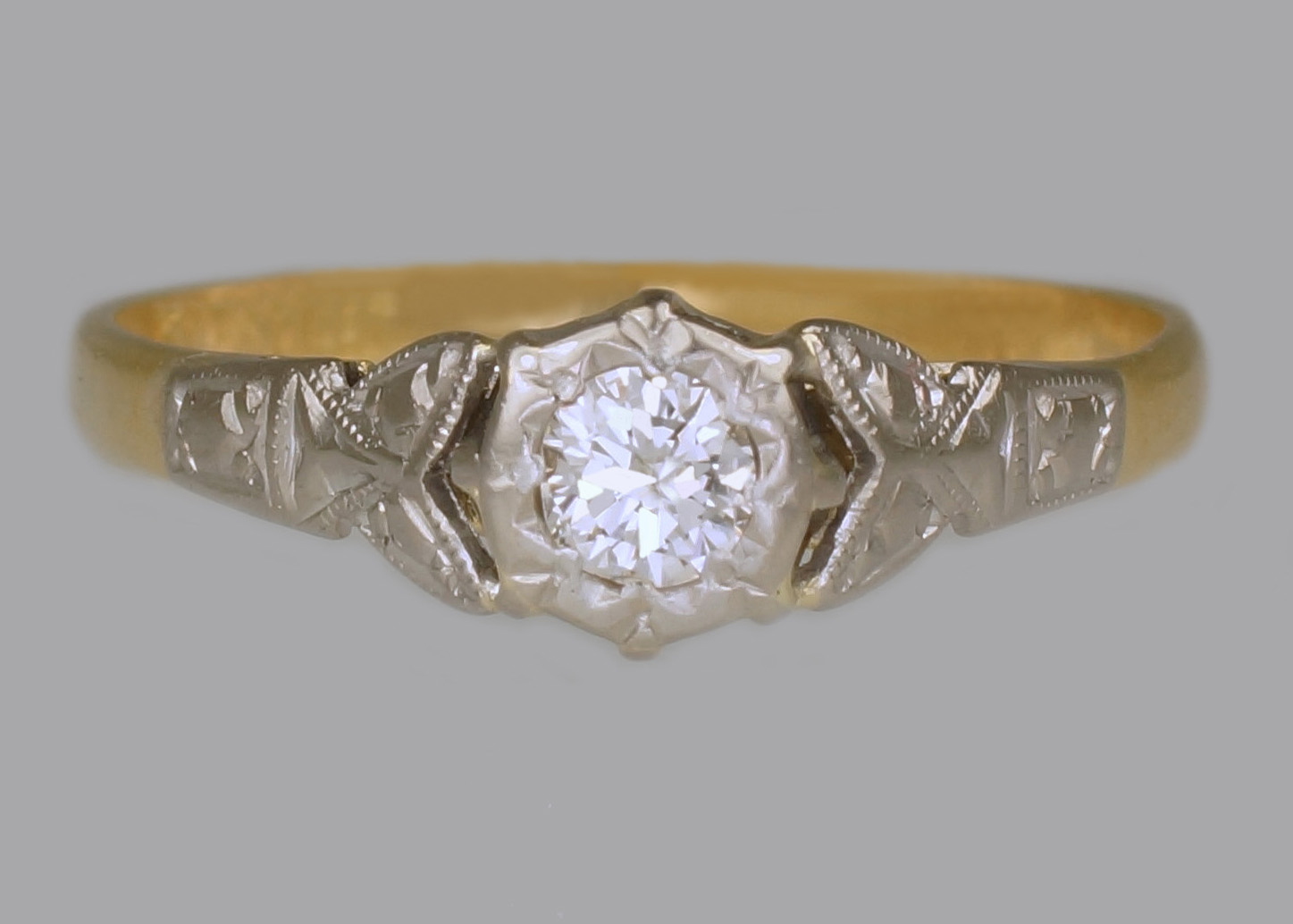 Antique Solitaire Diamond Ring 18ct Gold & Plat 1920s Art Deco Engagement Ring