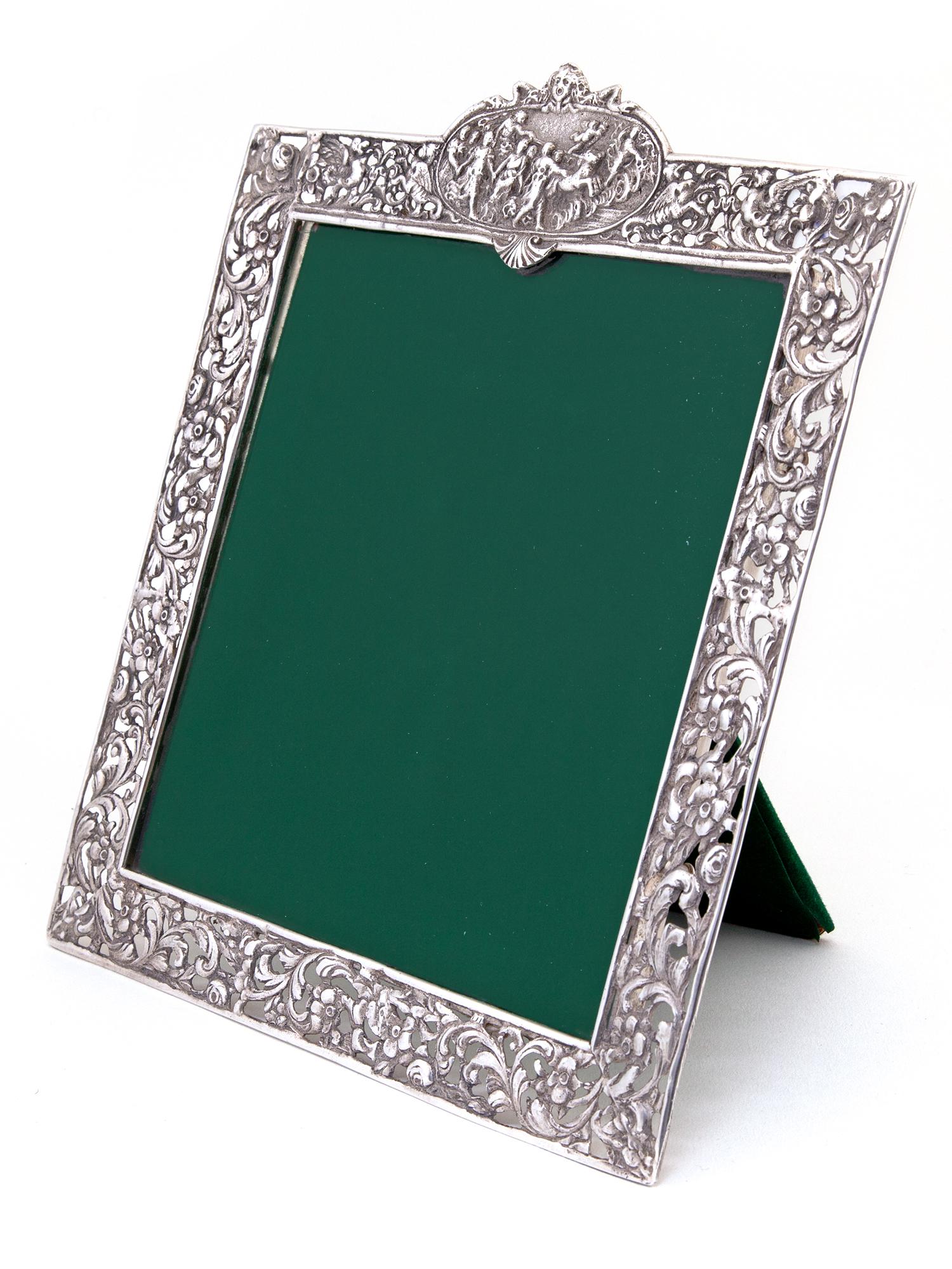 Antique Square Silver Frame with a Cartouche Depicting Females and Horses (1 of 7)