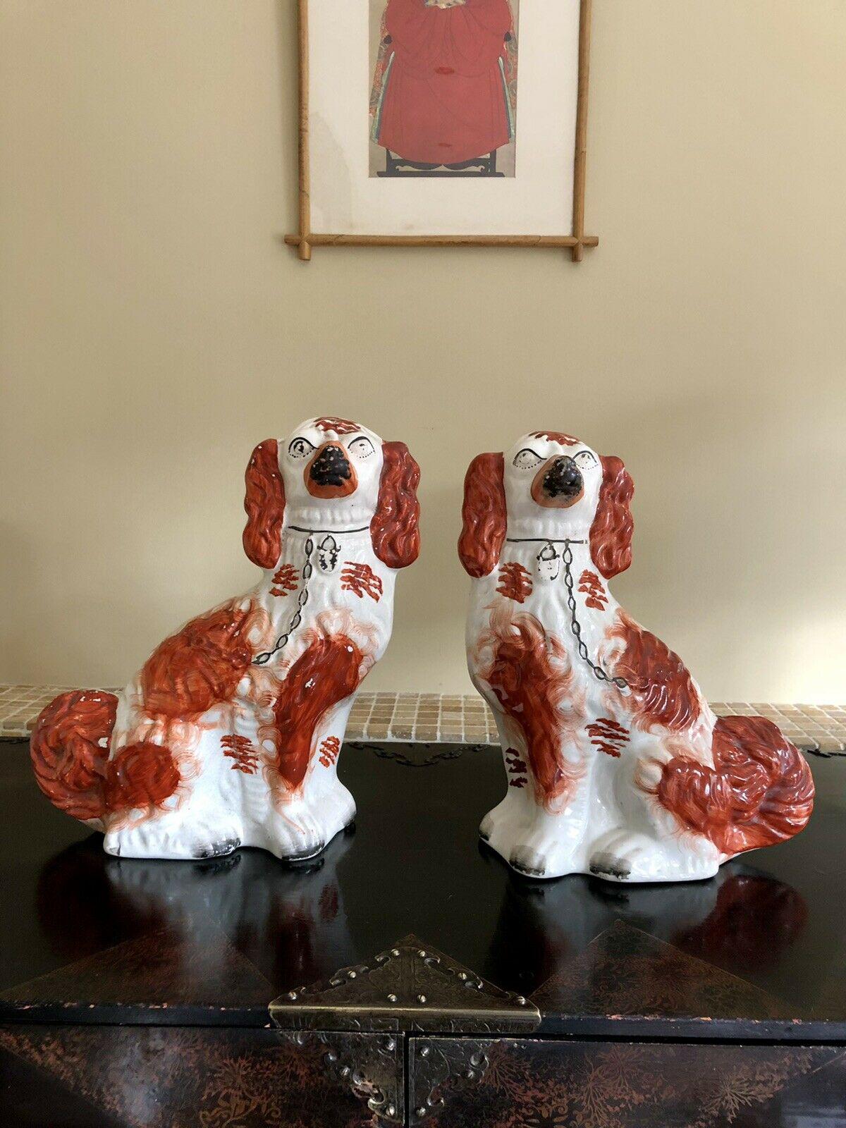 Antique Staffordshire Pair of Wally Dogs King Charles Spaniels, Mantle Dogs