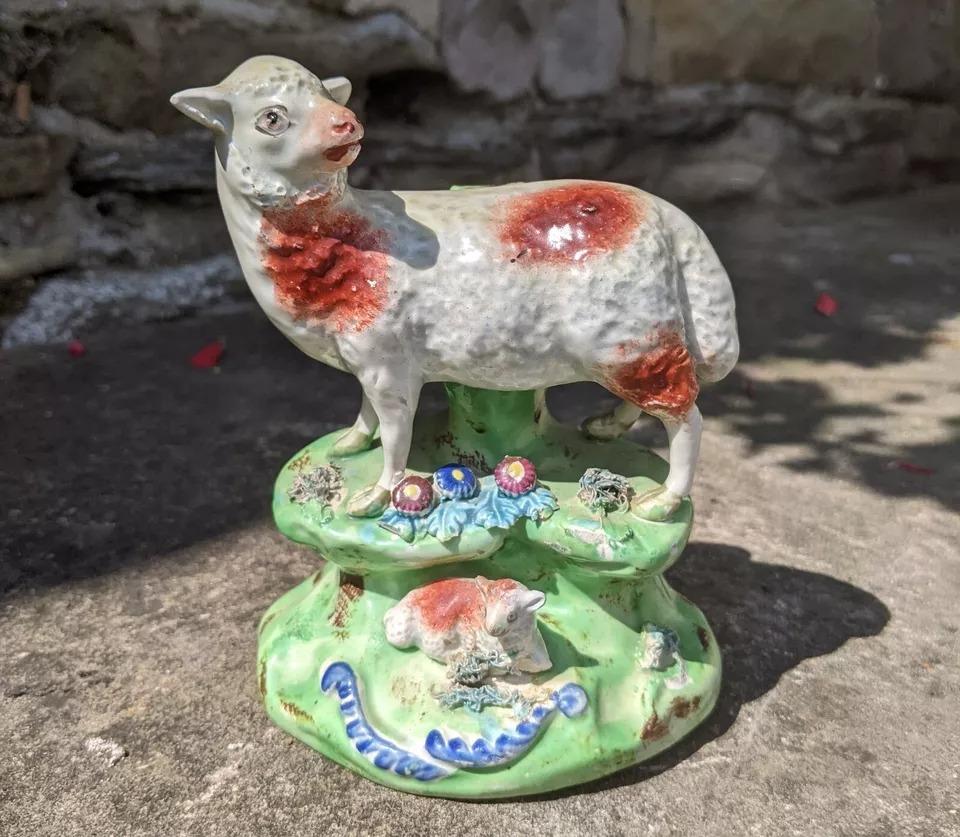 Antique Staffordshire Pottery - Walton - Pearlware Sheep & Lamb Figure (1 of 5)
