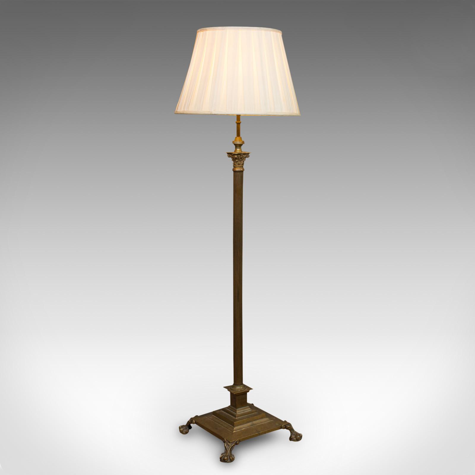 Antique Standard Lamp, English, Brass, Floor Light, Edwardian c.1910