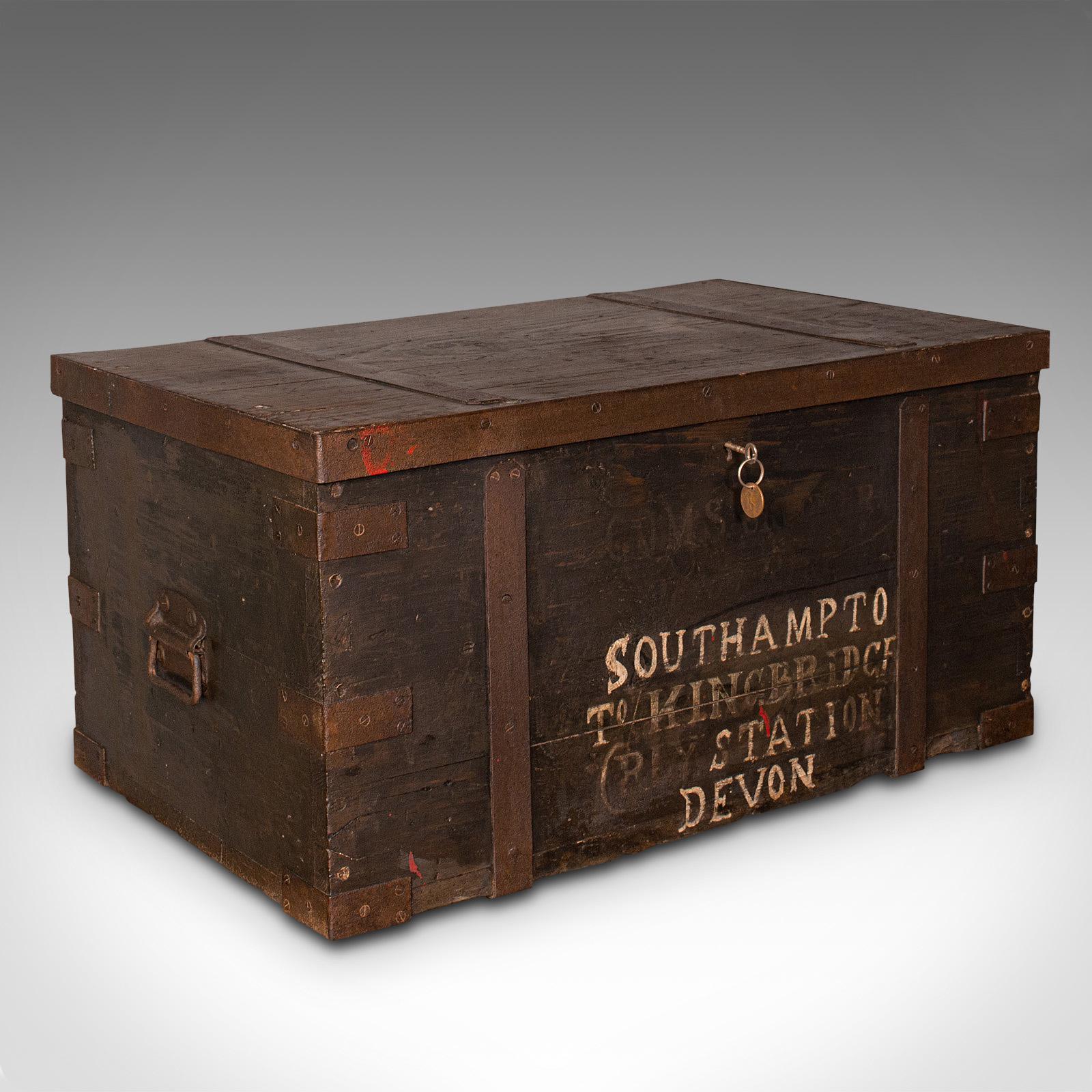 Antique Steamer Trunk, English, Pine, Iron, Carriage Chest, Victorian c.1860