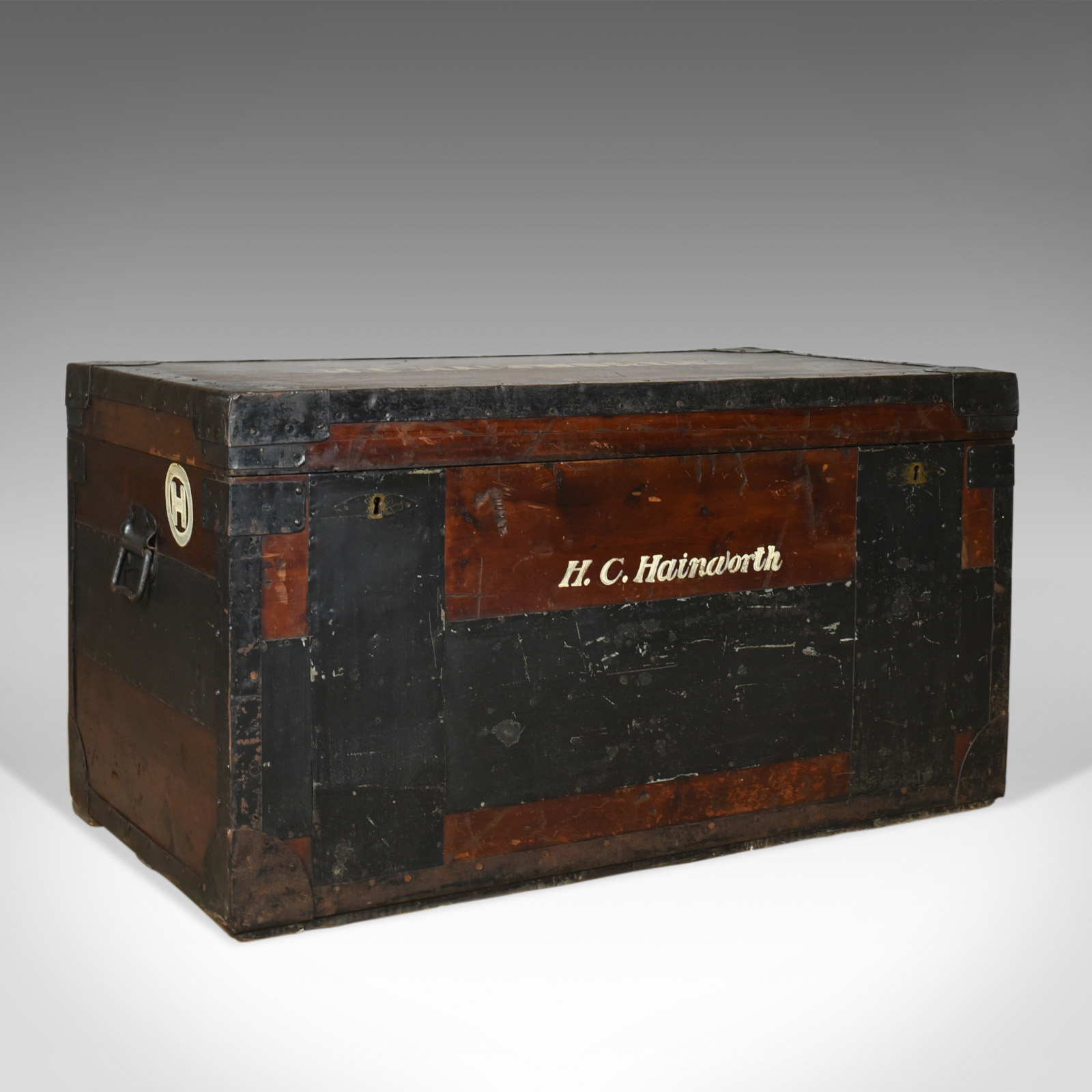 Antique Steamer Trunk, Large, English, Pine, Metal Lined, Chest, Edwardian c.1910