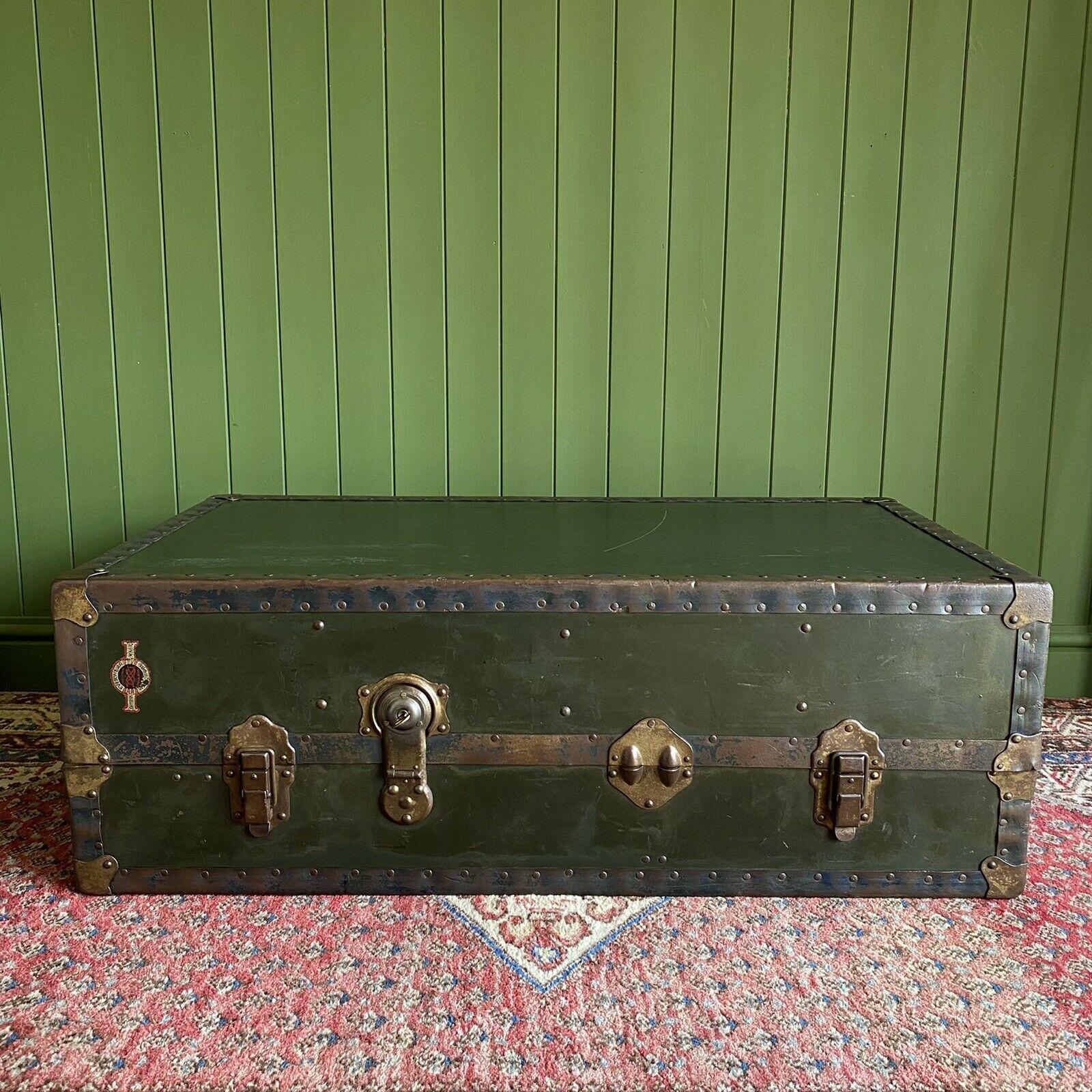 Antique Steamer Wardrobe Trunk Chest Travel Storage Luggage + Key - Everwear British Made c.1920