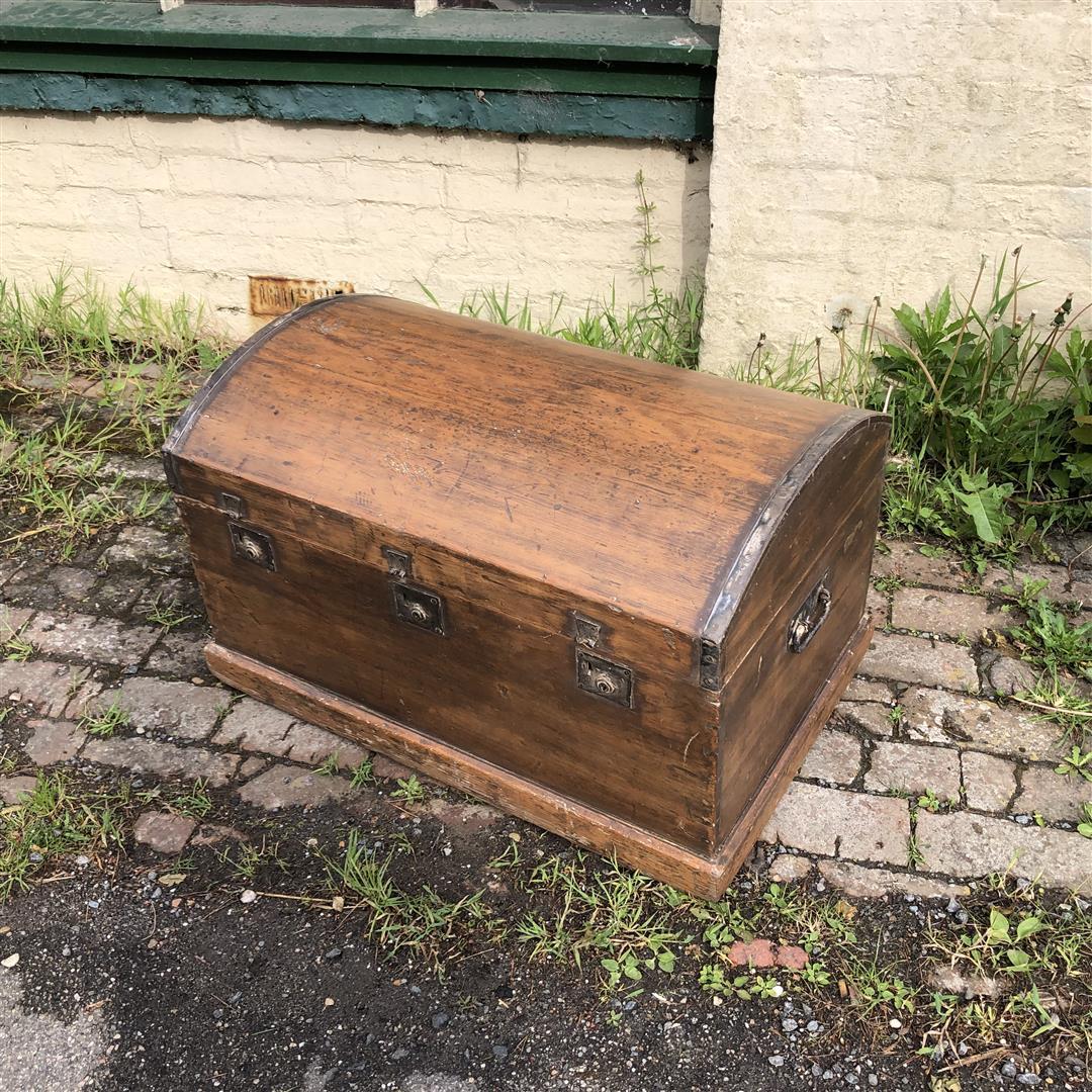 Antique Steel Bound Arch Top Pine Steamer Trunk