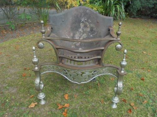 Antique Steel & Cast Iron Fire Basket Dog Grate c.1880