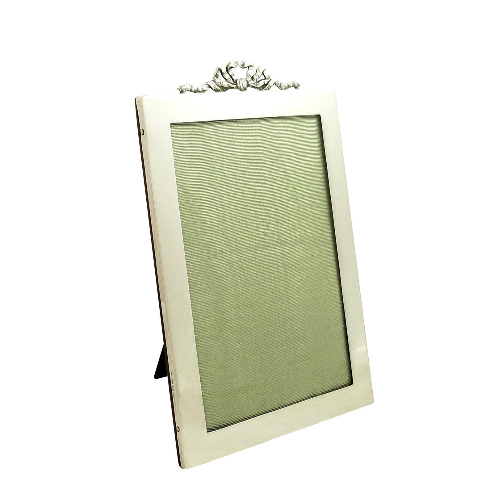 Antique Sterling Silver 8" Bow/Ribbon Photo Frame 1919