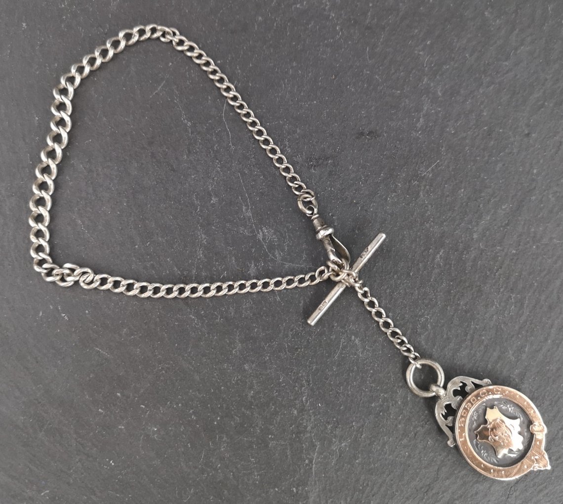 Antique Sterling Silver Albert Chain and Fob