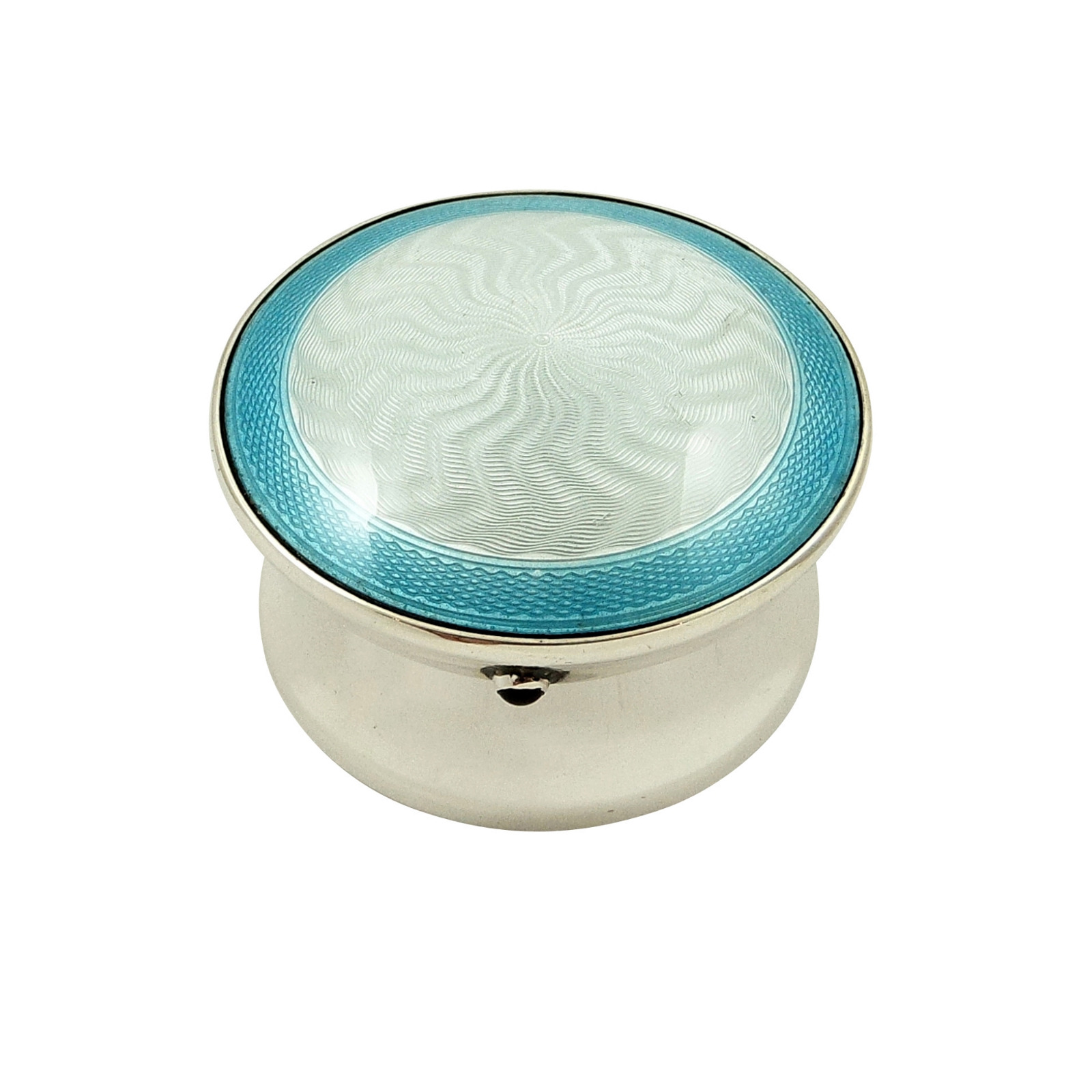Antique Sterling Silver & Blue Guilloche Enamel Trinket Box 1911
