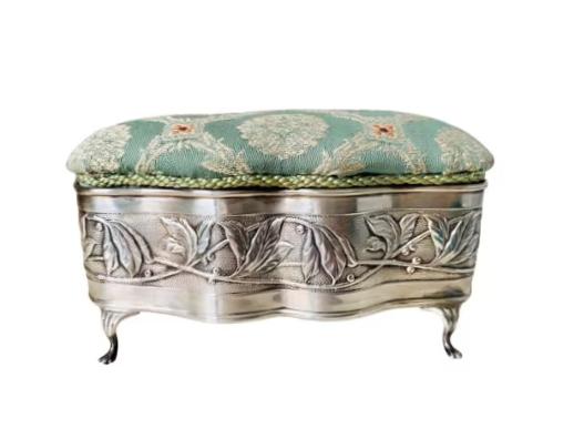 Antique Sterling Silver & Brocade Jewel Casket with Pin Cushion Top Birmingham 1909