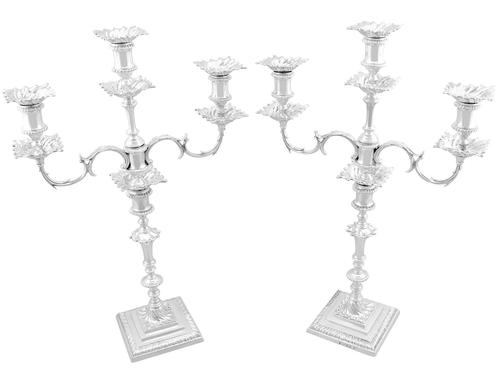 These versatile three-light Victorian candelabra can be used as silver candlesticks once the arms are detached.