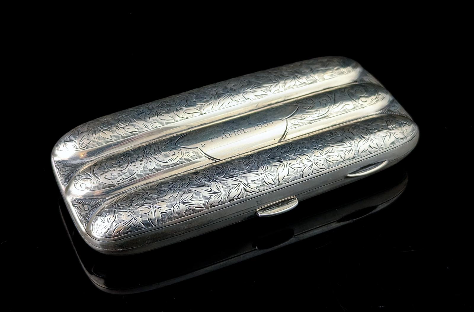 Antique Sterling Silver Cigar Case, Engraved, Victorian