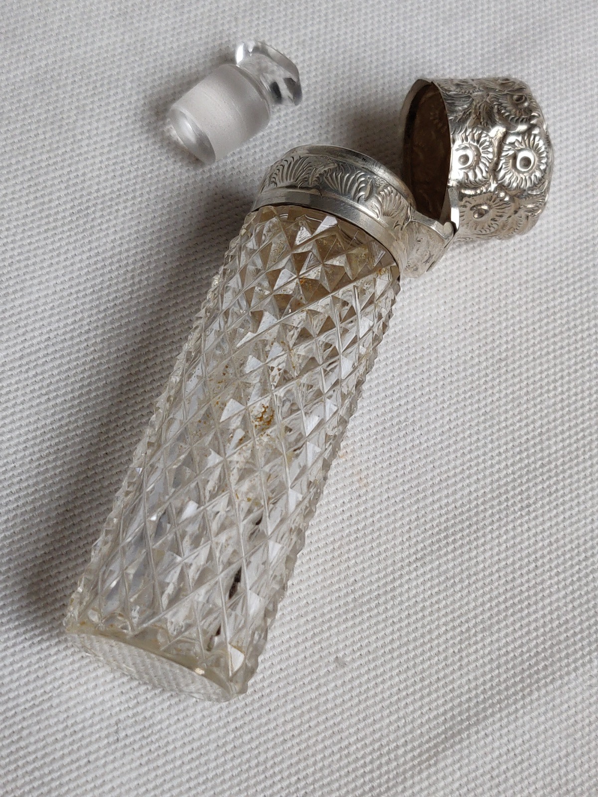 Antique Sterling Silver Cut Crystal Perfume Scent Bottle by Charles May Birmingham 1898