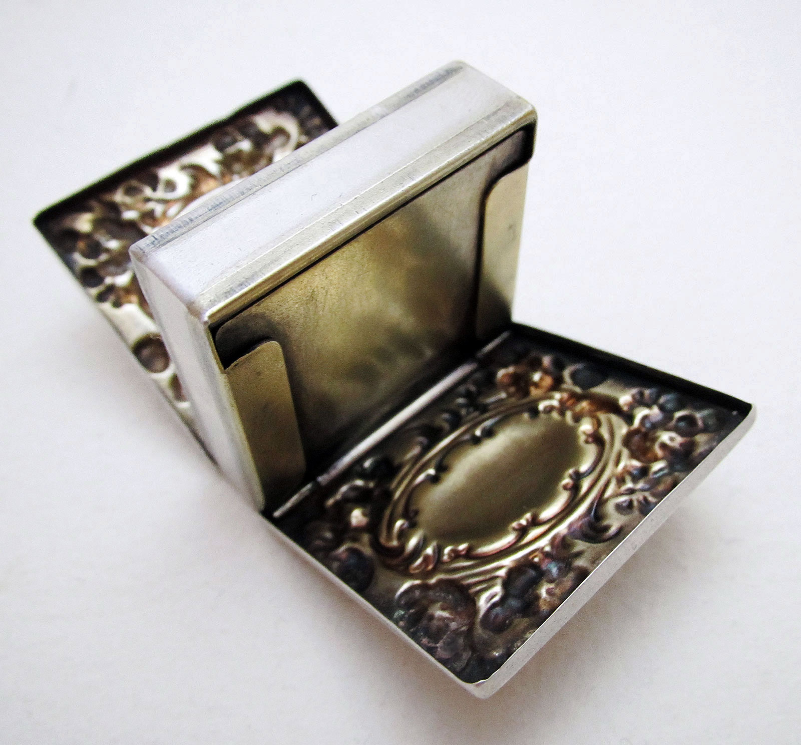 Antique Sterling Silver Double Stamp Case Box, Whiting Manufacturing MFG Co 1893