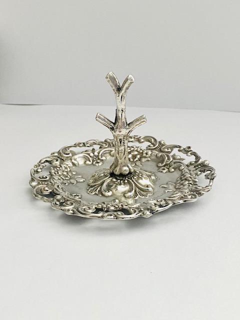 Antique Sterling Silver Dressing Table Trinket Dish & Ring Tree Birmingham 1902