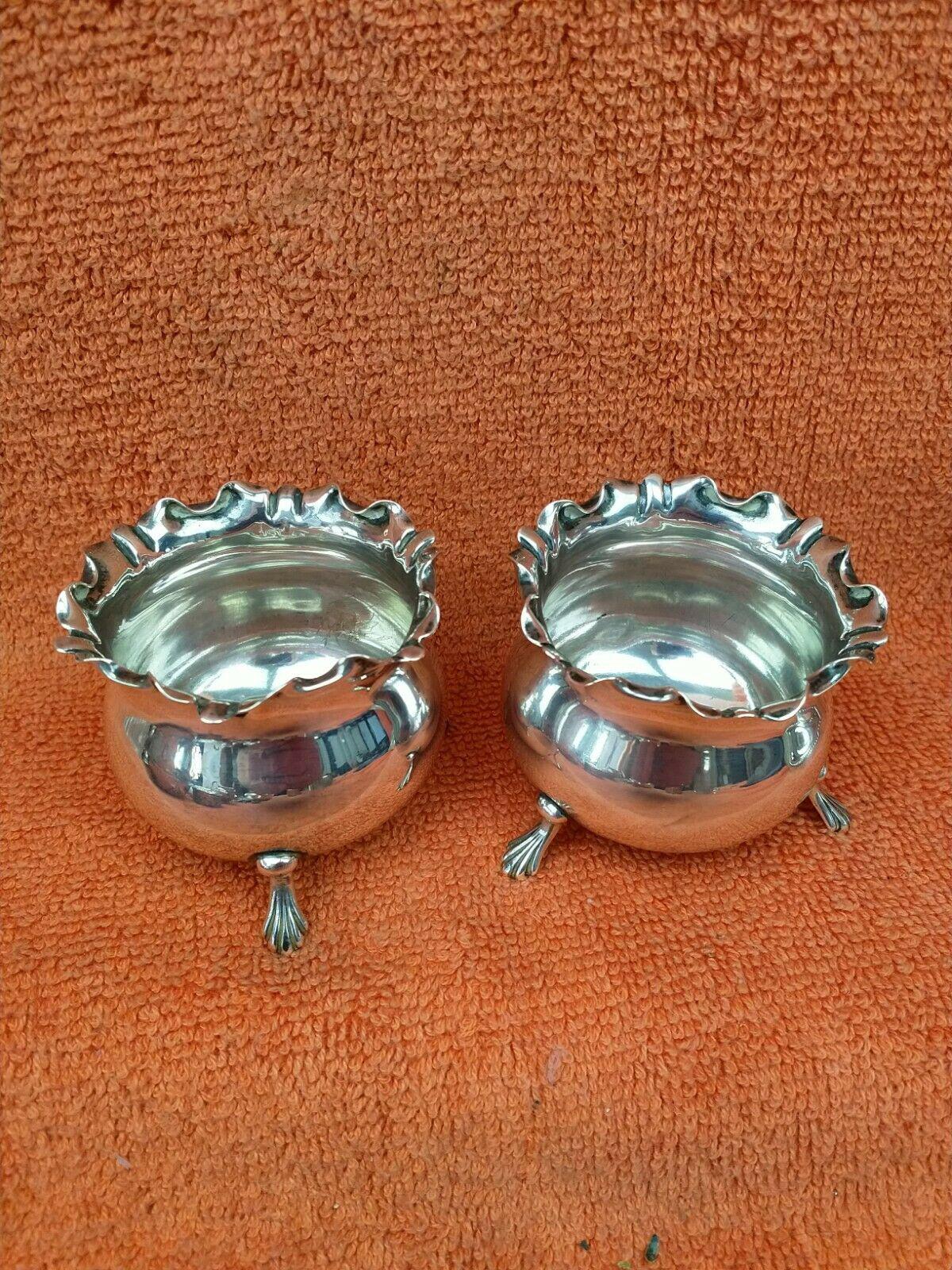 Antique Sterling Silver Hallmarked 1900 Pair of Salts William Hutton & Sons Ltd