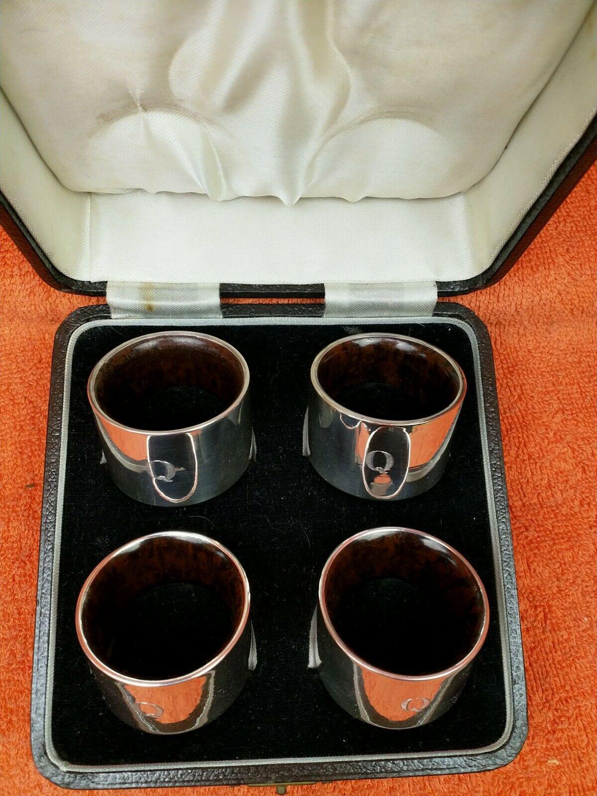 Antique Sterling Silver Hallmarked Cased Napkin Rings 1942 Joseph Gloster Ltd Unusual Bakelite Wood Internal Finish