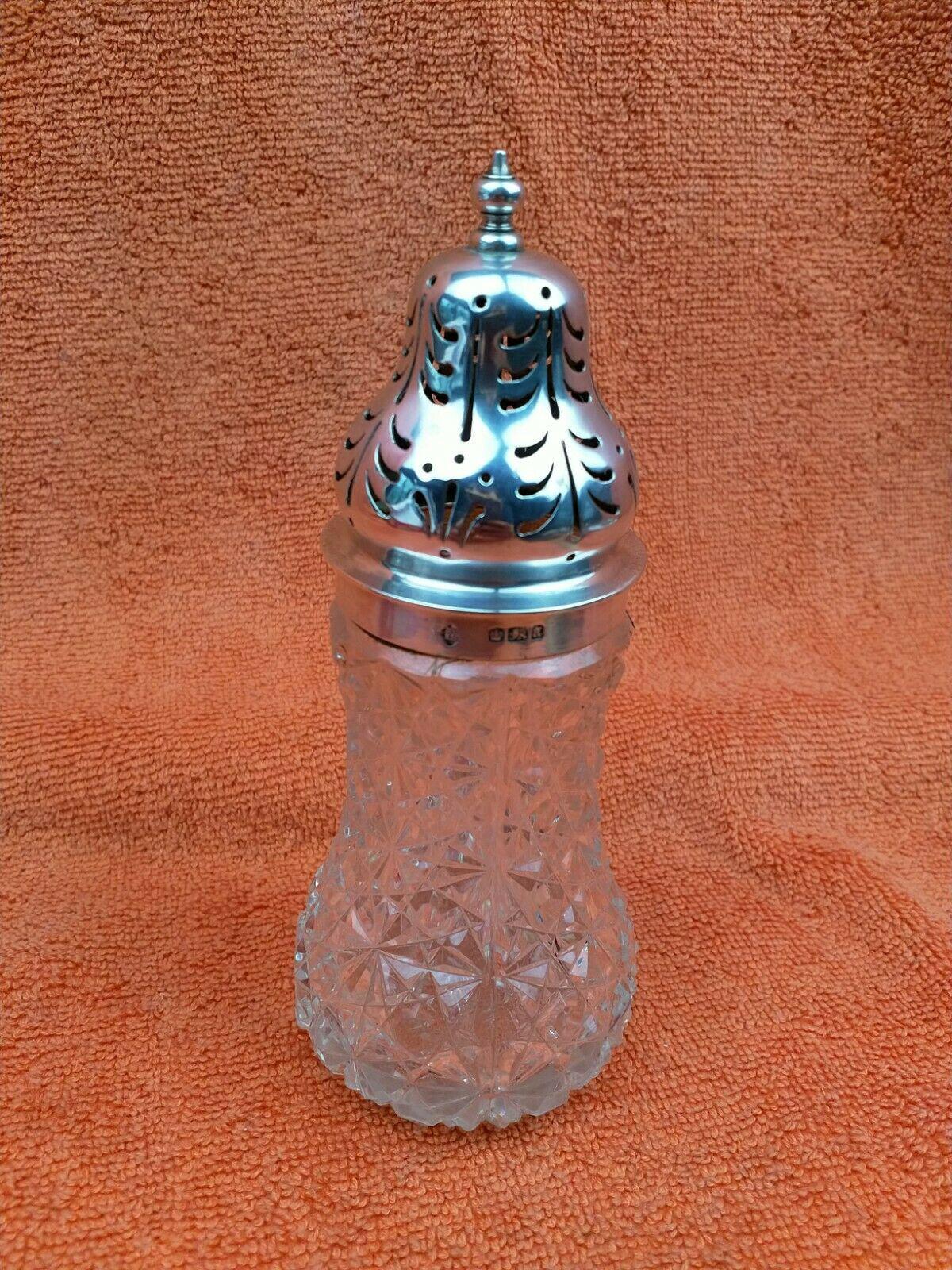 Antique Sterling Silver Hallmarked Cut Glass Sugar Shaker 1893 Sheffield - Martin, Hall & Co (richard Martin & Ebenezer Hall)