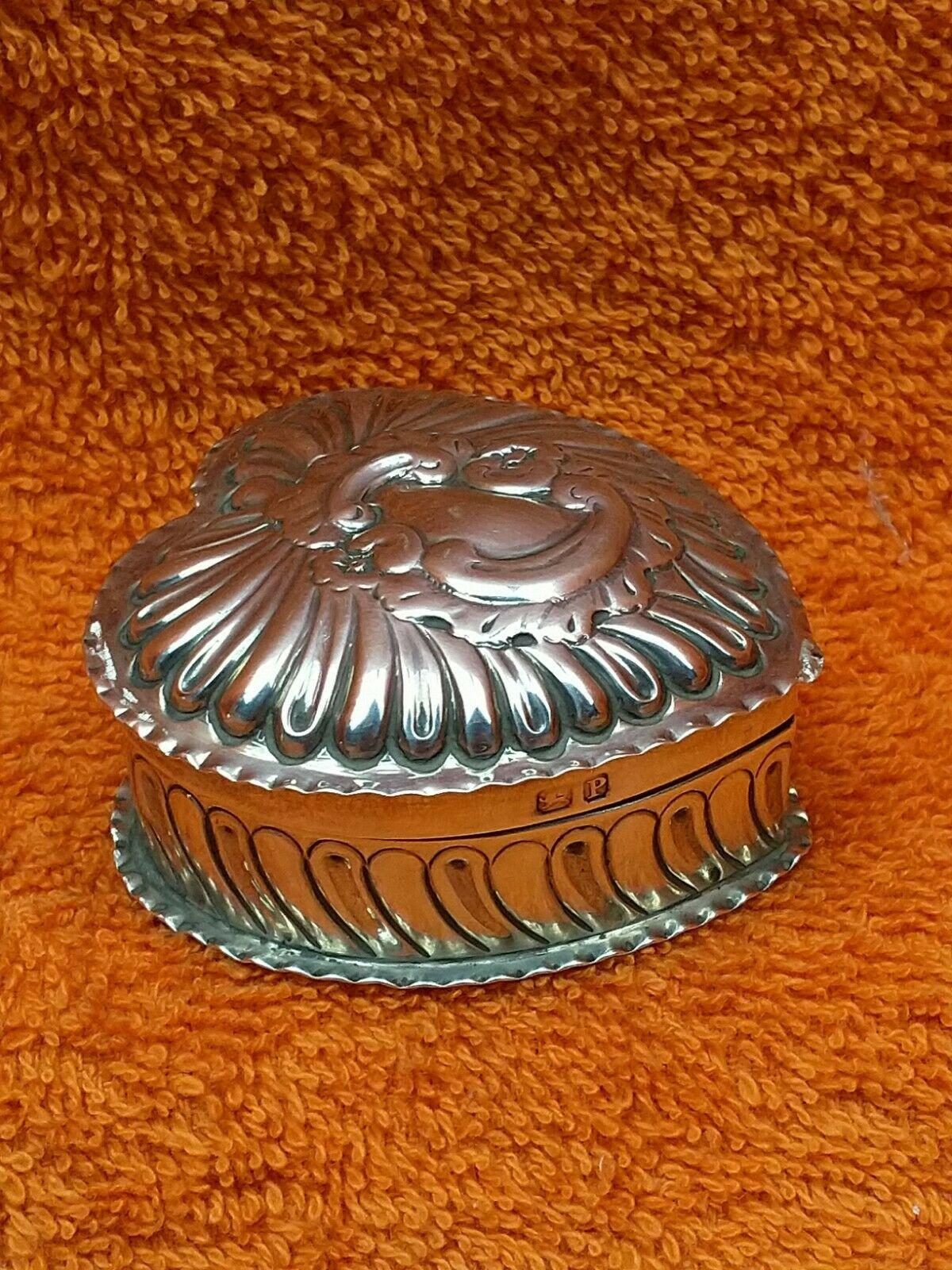 Antique Sterling Silver Hallmarked Heart Pill / Ring Box 1898, N & Hayes Chester