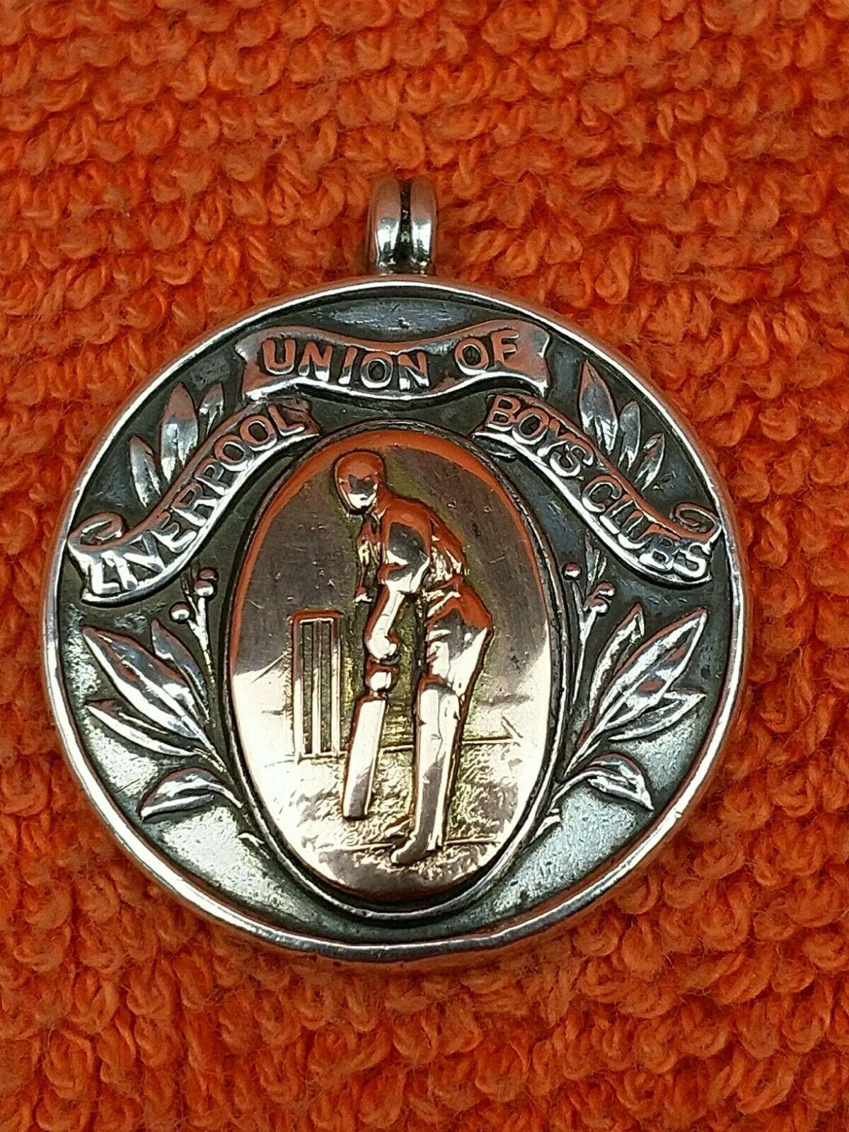 Antique Sterling Silver Hallmarked & Rose Watch Fob 1919, Cricket, Liverpool Union of Boys Club