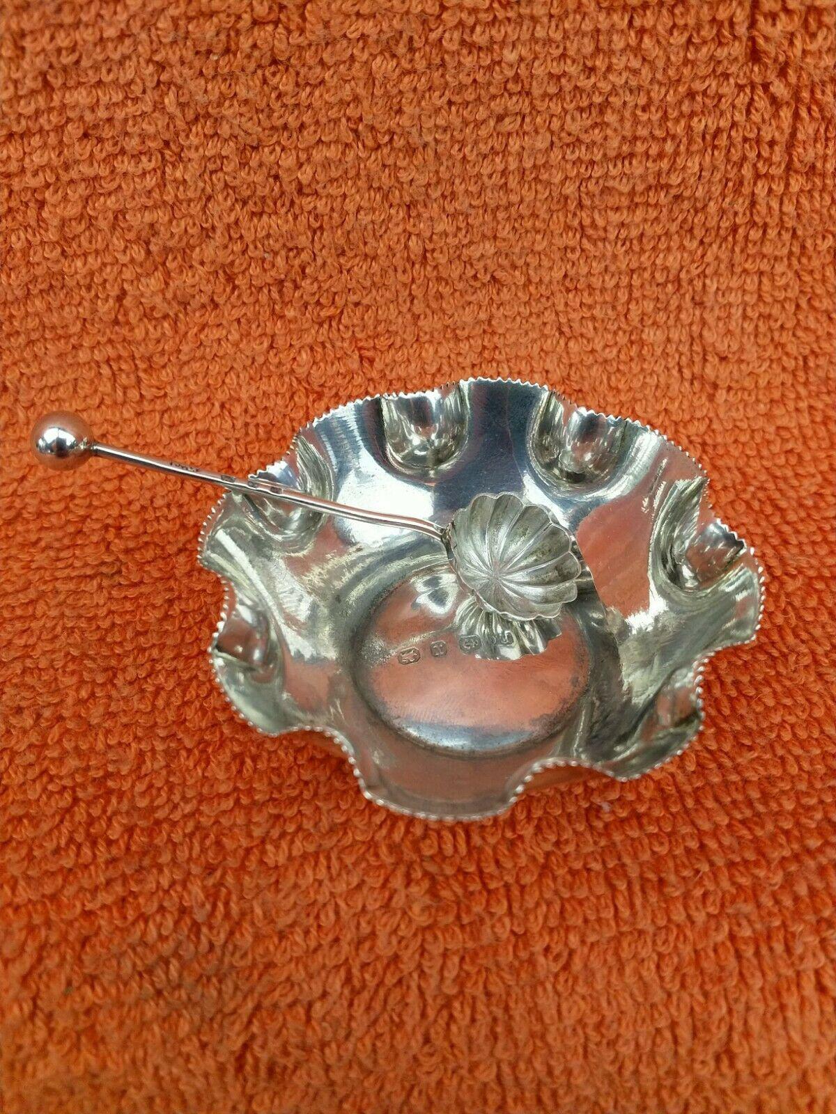 Antique Sterling Silver Hallmarked Salts & Matching Spoon 1897 E G