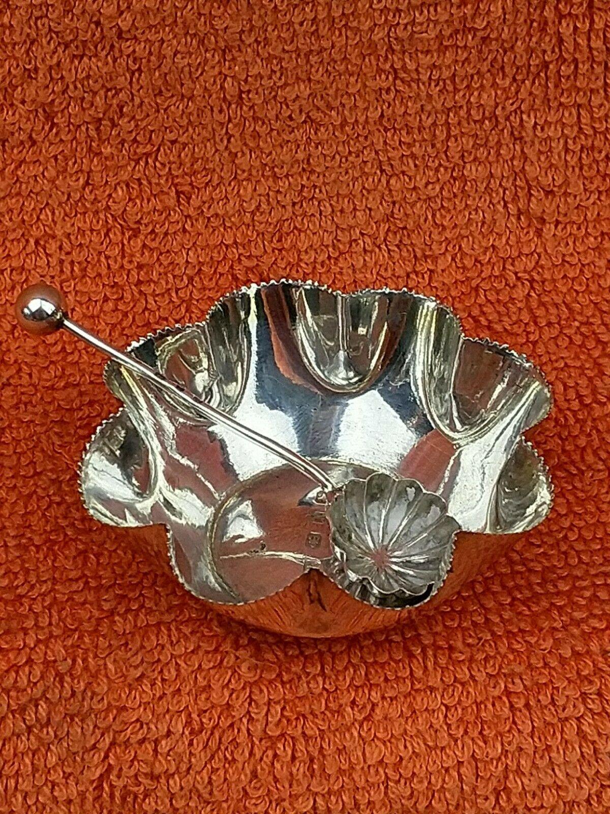 Antique Sterling Silver Hallmarked Salts & Matching Spoon 1897 E. G