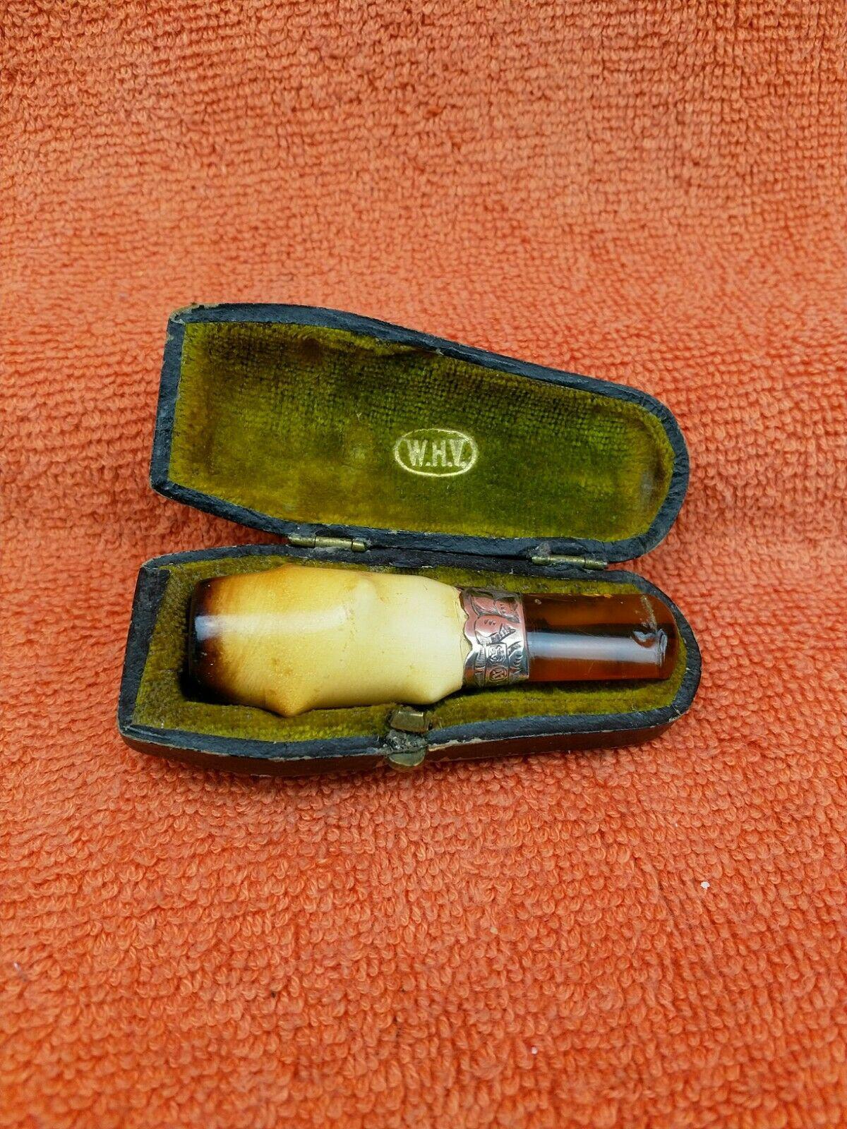 Antique Sterling Silver Hallmarked Silver & Amber Cheroot Holder 1897, William Henry Vince